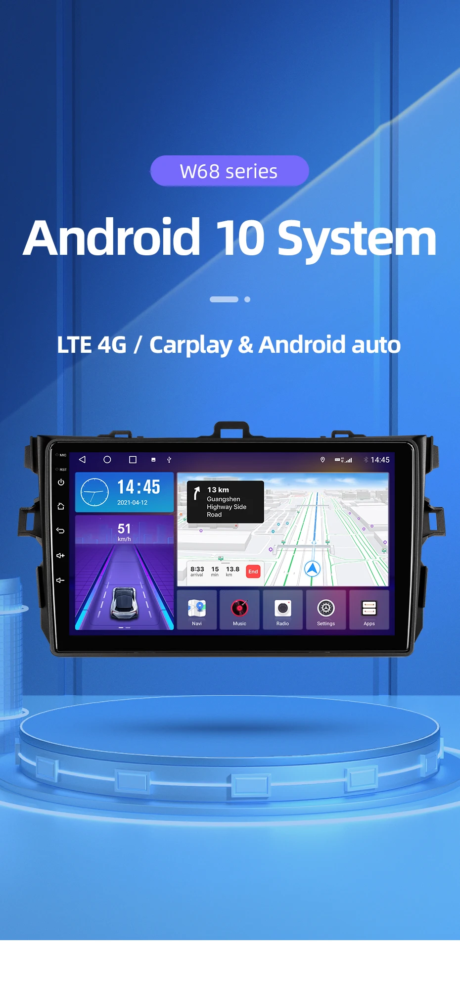 Пожалуйста, обратите внимание: только w68 поддерживает сеть 4G (sim-карта не входит в комплект)>>> Подключите свой автомобильный радиоприемник к Wi-Fi и можете использовать его как телефон, загрузите приложение из игрового магазина, которое вам нравится.