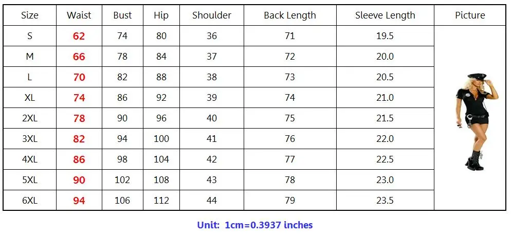5 шт. = платье + шляпа + ремень + пластиковые наручники + значокРазмер: S M L XL 2XL 3XLРазмер костюма не такой, как размер одежды в вашей стране, пожалуйста, ознакомьтесь с нашей таблицей размеров перед заказом.Измеряется вручную, допустимая погрешность в определении 1-2 см.1 дюйм = 2,54 см