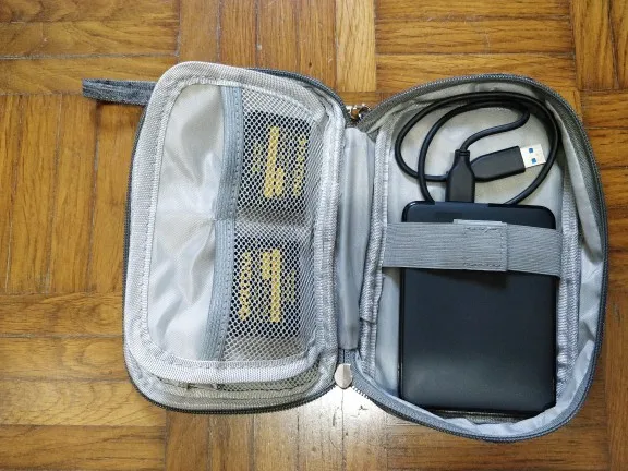 Прежде всего, описание не очень точное. Они говорят вам, что ткань водонепроницаемая, хорошо, она водоотталкивающая. Также застежка-молния не является водонепроницаемой, поэтому вода будет легко просвечивать через нее. Цвет немного холоднее и темнее, чем на фотографии. Сумка сама по себе плохо проложена, поэтому жесткий диск не будет в безопасности в случае падения. Если говорить о внутреннем пространстве, это хорошо, сетчатые карманы пригодны, и я уверен, что вы можете хранить там любой жесткий диск, в нем много места. Также хорошо подходит для хранения мелких предметов для фотосъемки, таких как аккумуляторы, кабели, sd-карты, адаптеры и т. Д. Все это немного хорошо по цене. Доставка в Италию занимает 8 недель.
