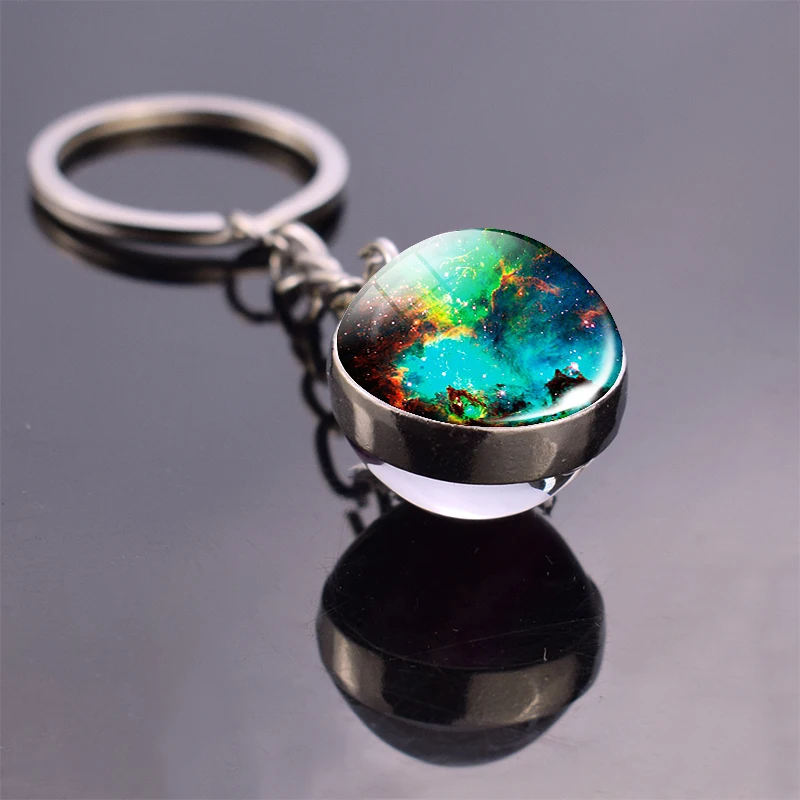 Двухсторонний брелок со стеклянным шаром, брелок ручной работы с изображением вселенной, звезд, галактики, планеты, брелок для ключей, ювелирные изделия для космоса