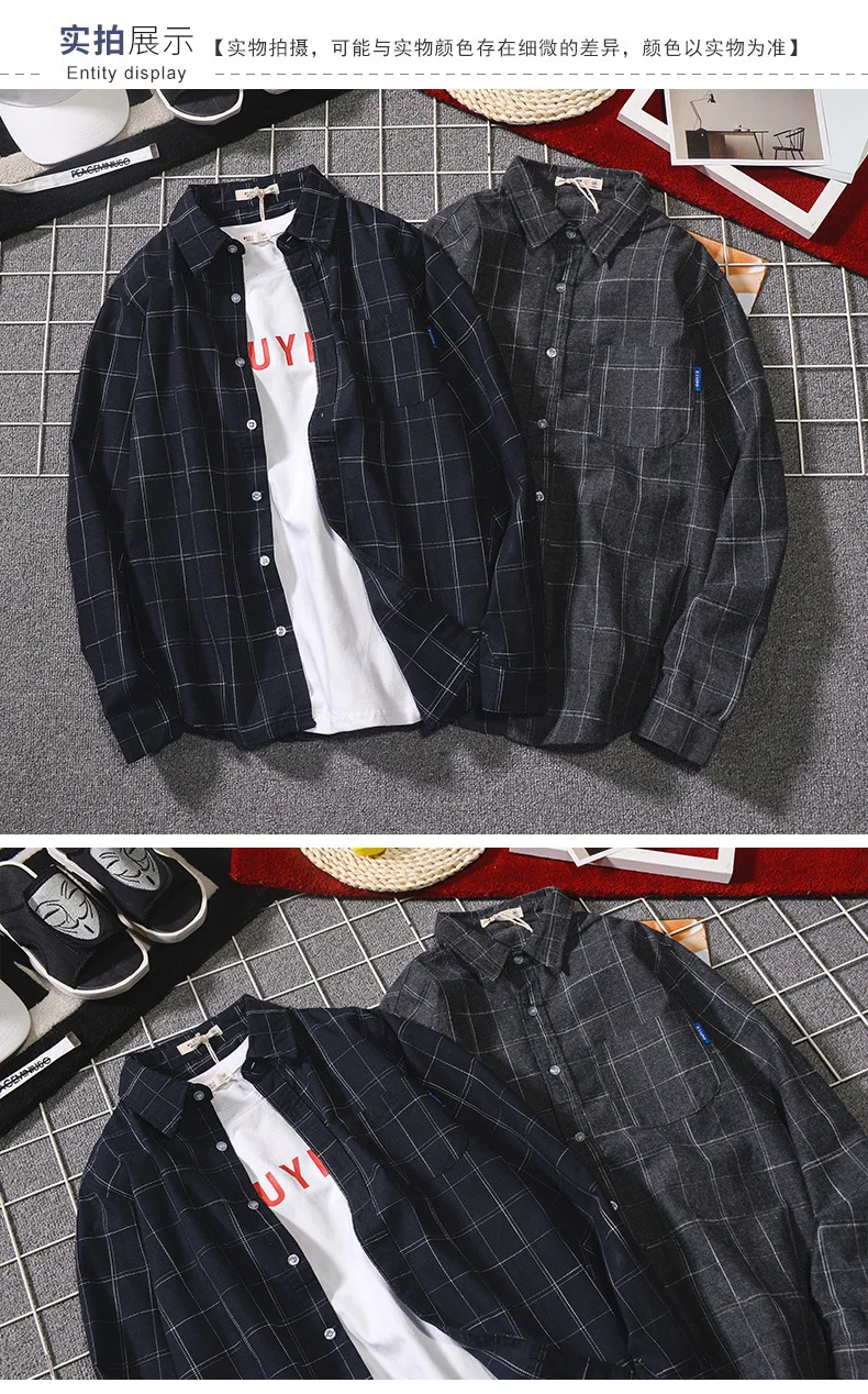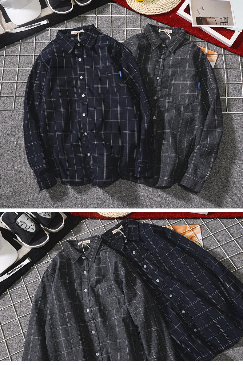 Рубашка FGKKS мужская с отложным воротником, Повседневная рубашка в клетку, с длинным рукавом, на весну