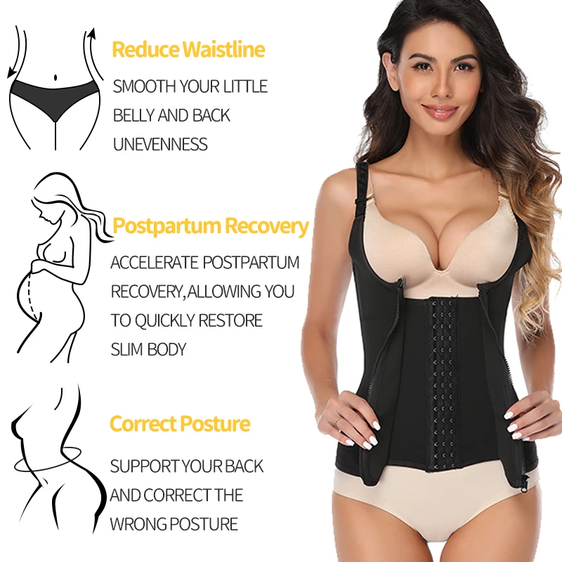Компрессионный корсет Fajas для коррекции фигуры, жилет для женщин, утягивающий корсет на молнии для живота, корсет для похудения, вертикальная осанка