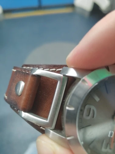 с далека конечно ремешке выглядит неплохо, но взяв его в руки понимаешь, что это немного (или много) не то, что хотелось. фурнитура вся какая-то фуфловая, пустотелая. материал жестковатый, пока не знаю, плюс это или минус. структура кожи, как на фото товара, отсутствует, он просто гладкий. из-за того, что металлическая часть ремешка немного уже оригинала, часы слегка люфтят. штырьки для соединения с часами в комплекте отсутствовали, те что были вообще не понятно для чего. оригинал у нас можно купить за 3тр, где по традиции часть цены отходит за бренд. от чего считаю, что с учётом качества, данный ремешок дороговат, 1тр будет более адекватным ценником. посмотрим как будет носиться. ps, пряжка не брендированая, я перекинул сам со старого ремешка.
