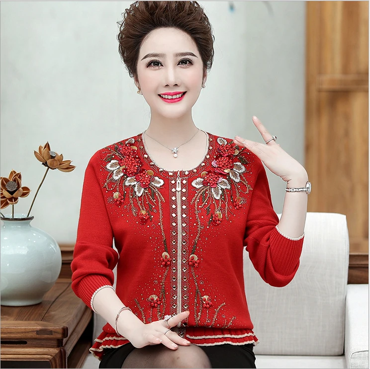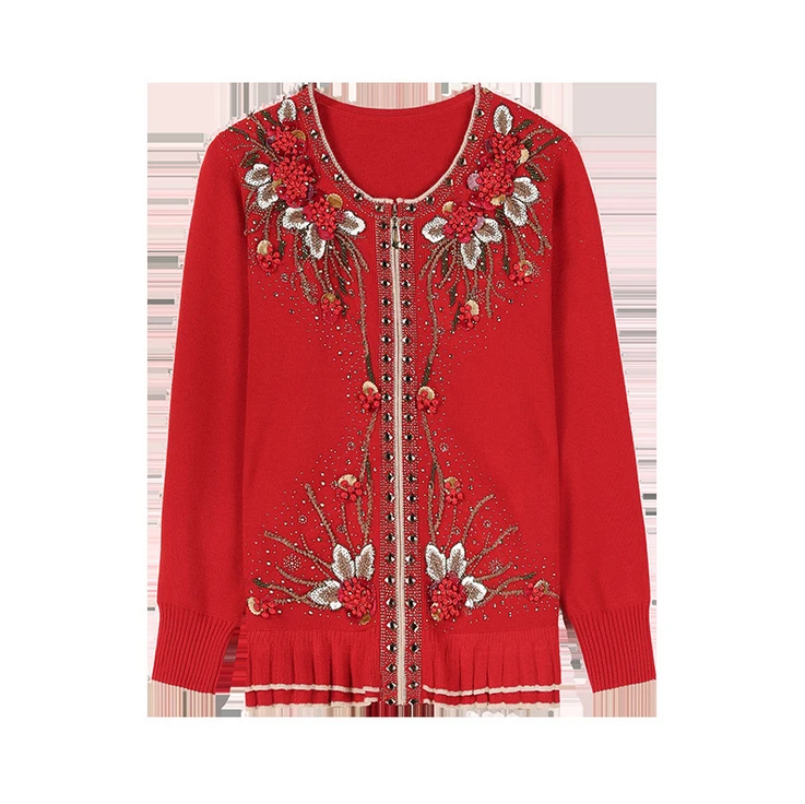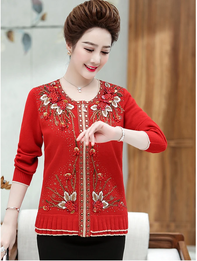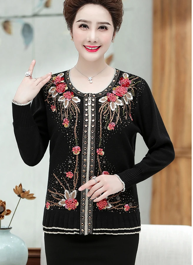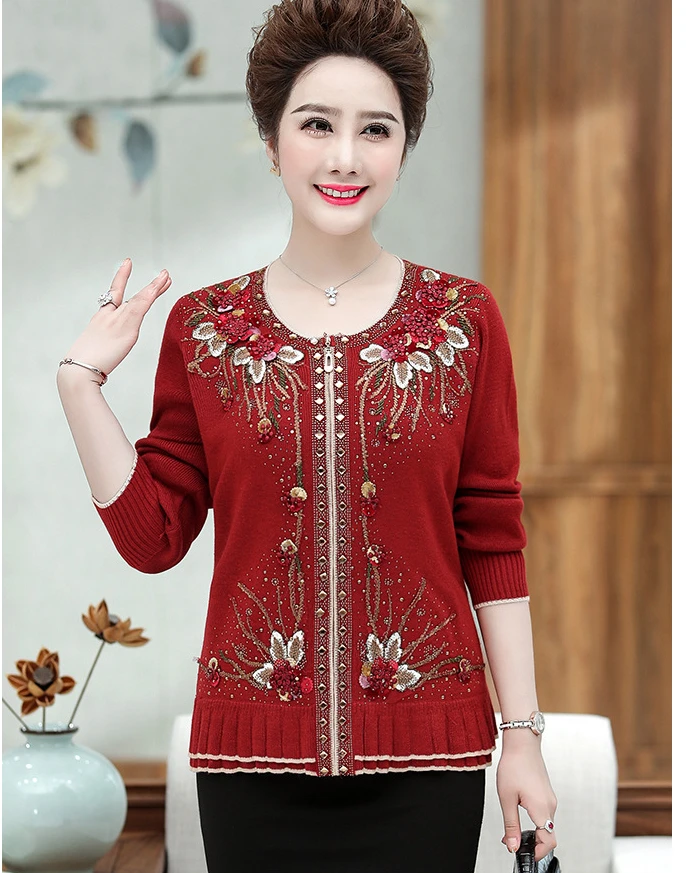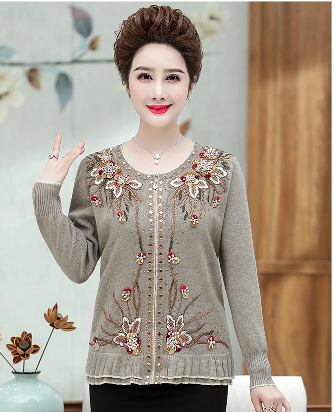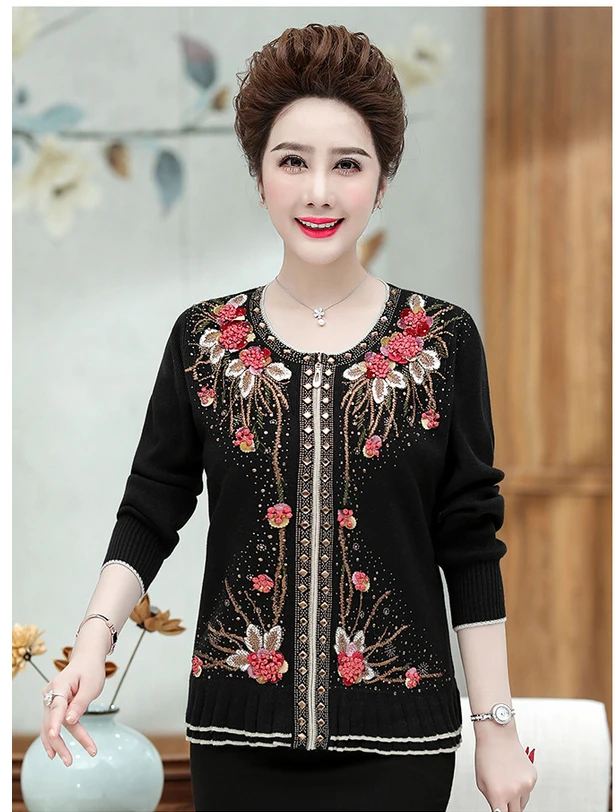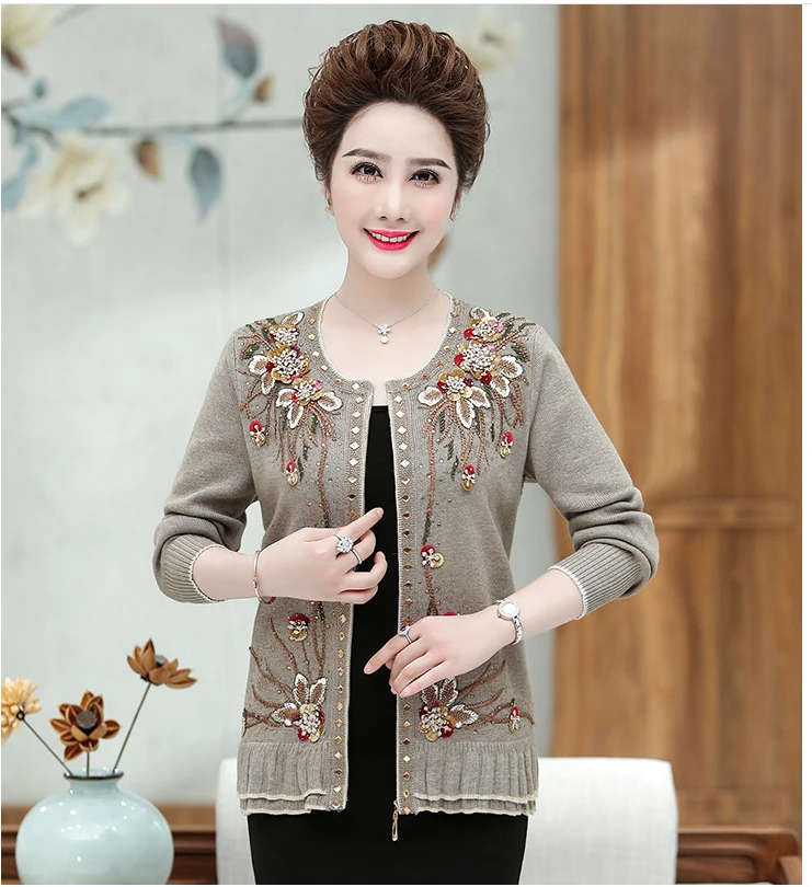 Новый кардиган, женский кардиган высокого качества с алмазной вышивкой, свитер для женщин 40-50 лет, женский свитер для среднего возраста, пальто F716