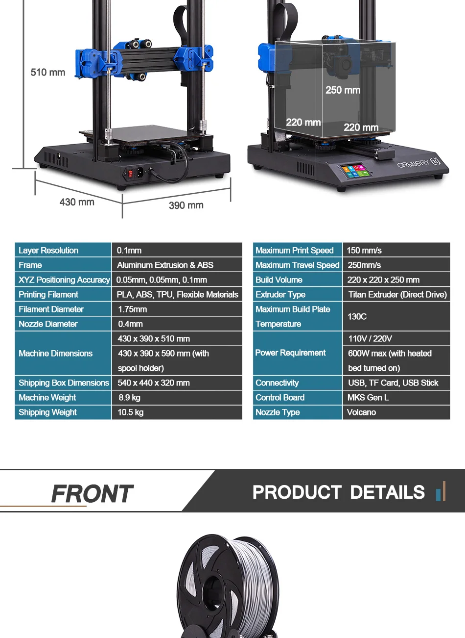 Максимальный размер печати220x200x250mm