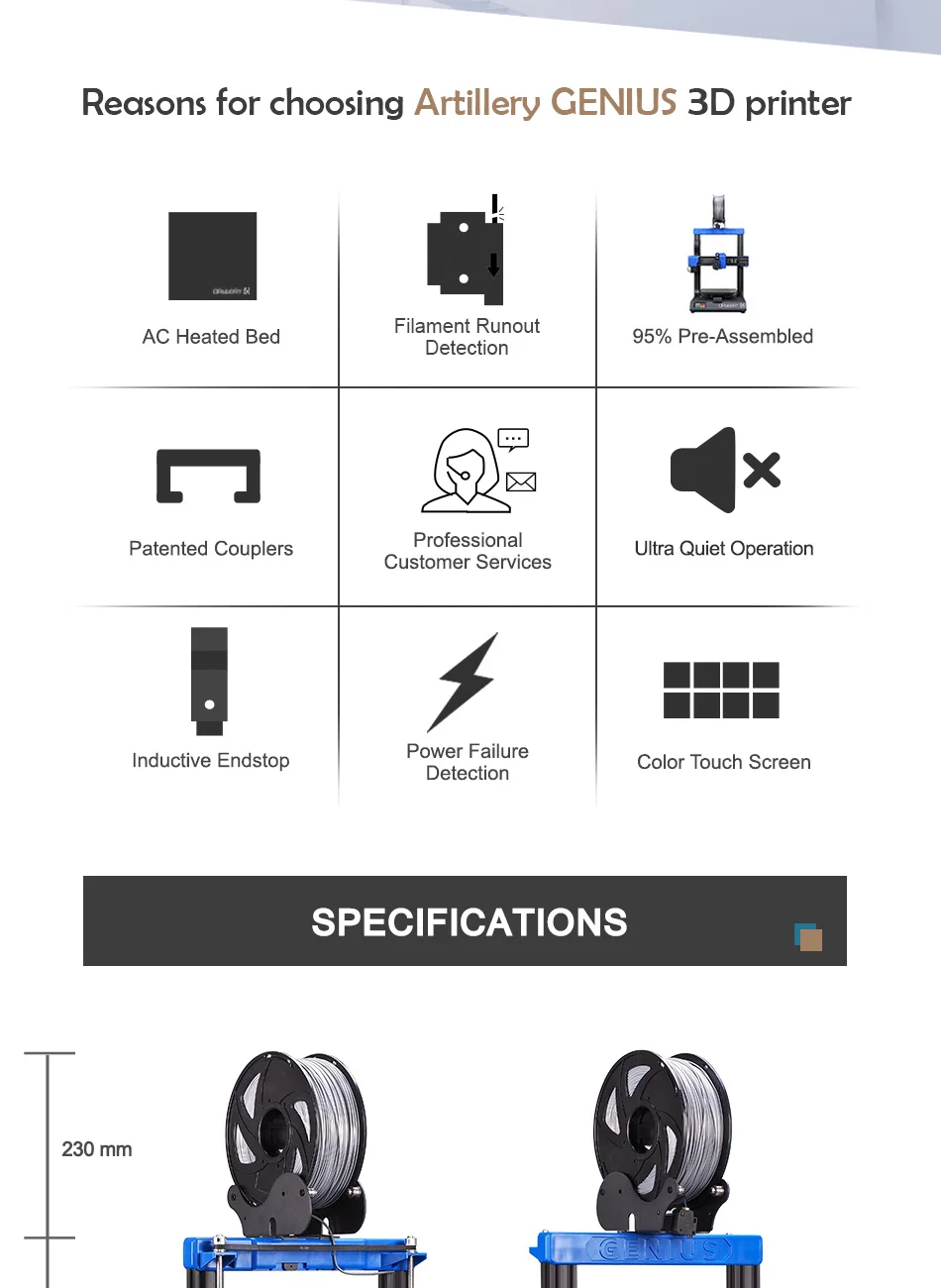 Настольный 3D-принтер Artillery GENIUS, высокая точность печати, дв...