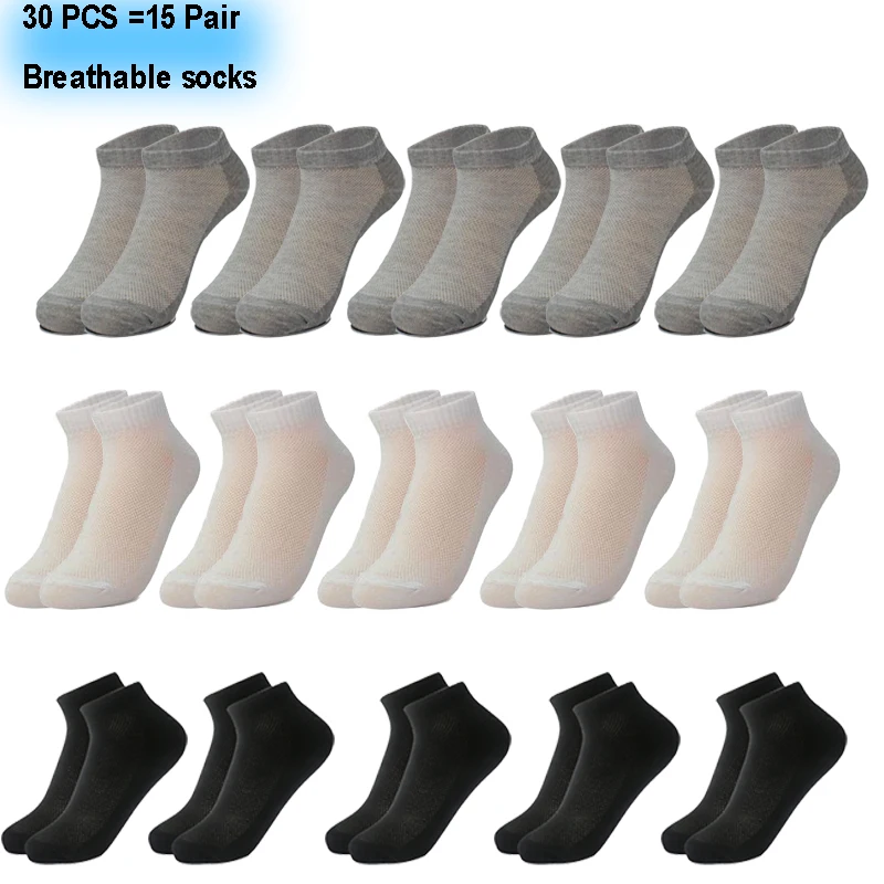 Носки мужские однотонные, тонкие короткие Повседневные Дышащие, до щиколотки, Прямая поставка, 30 шт. = 15 пар, летние