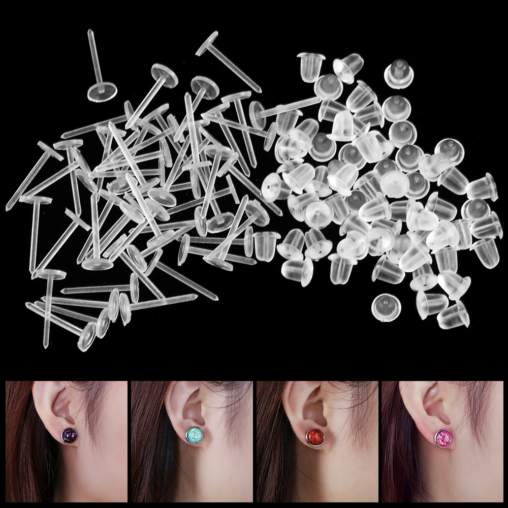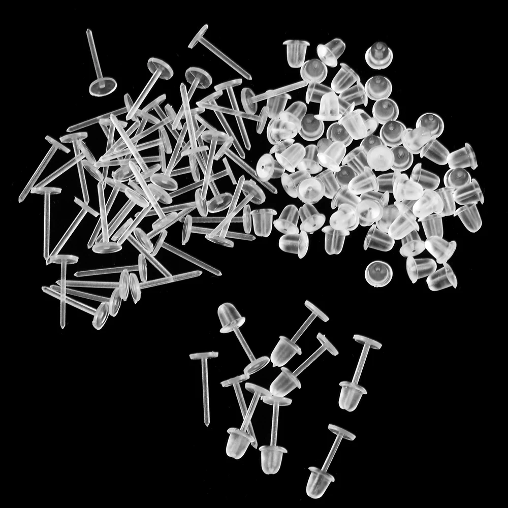 100 пар пластиковых сережек и спинок, прозрачные наушники и силиконовые резиновые спицы, наушники для мужчин и женщин