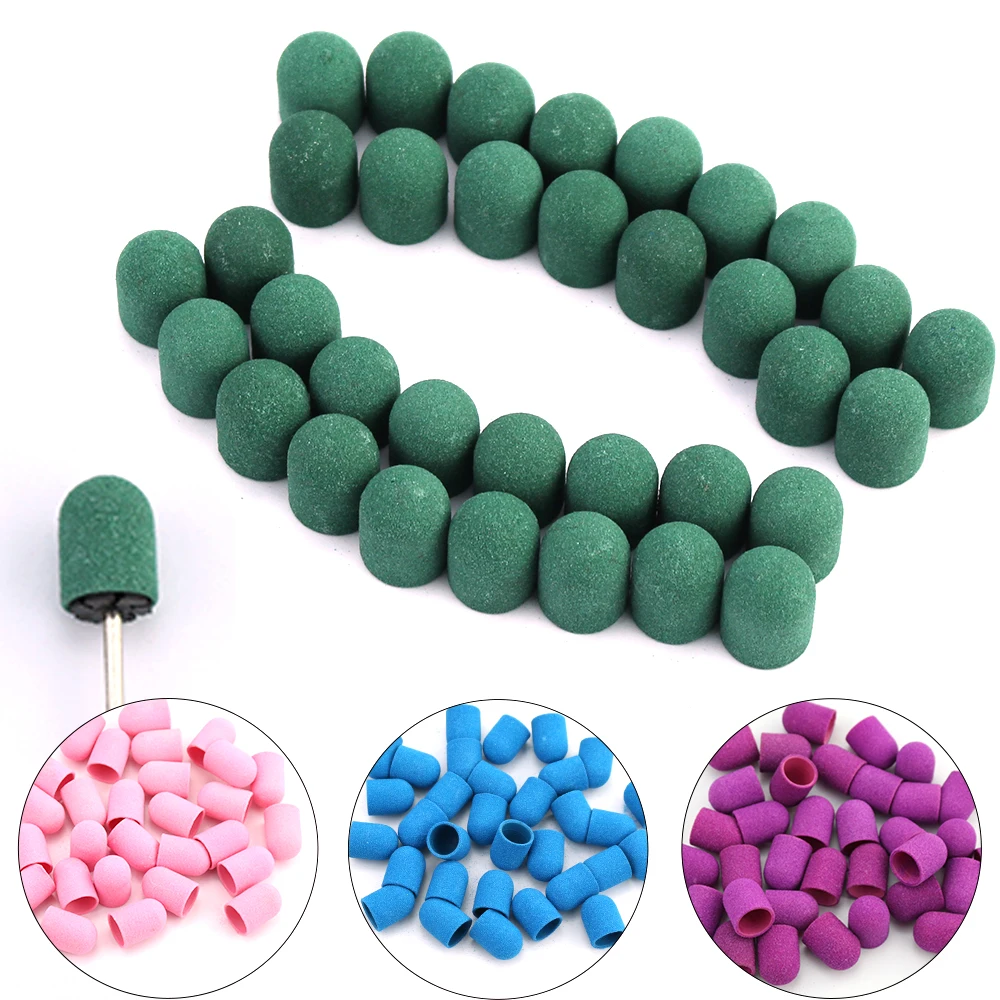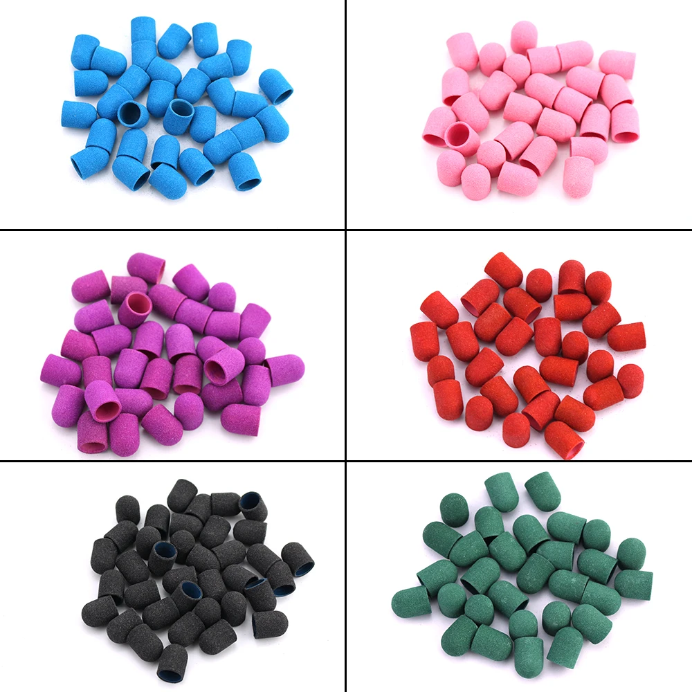 Колпачки шлифовальные электрические пластиковые для ногтей, 50 шт., 13*19 мм, с резиновой рукояткой, для сверления кутикулы, аксессуары для полировки ногтей, инструменты для педикюра
