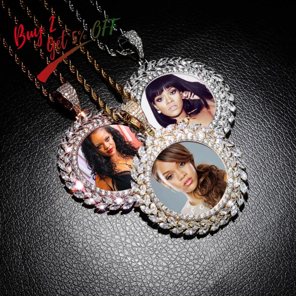 TOPGRILLZ зерно на заказ фото круглый медальон твердая задняя подвеска ожерелье с теннисной цепочкой кубический циркон мужские хип-хоп ювелирные изделия