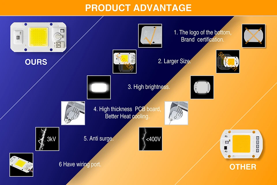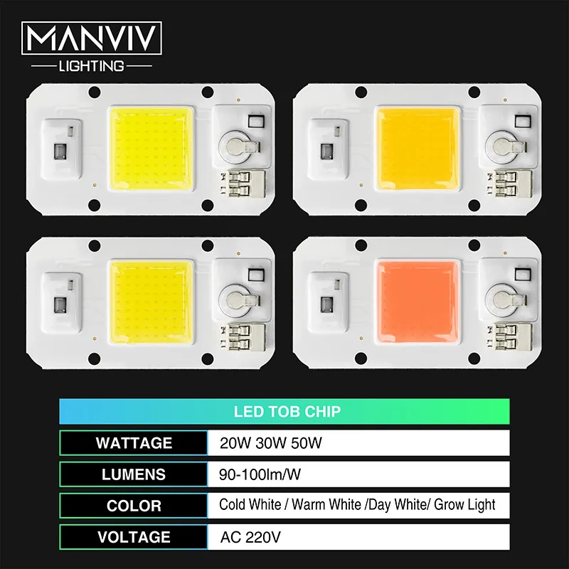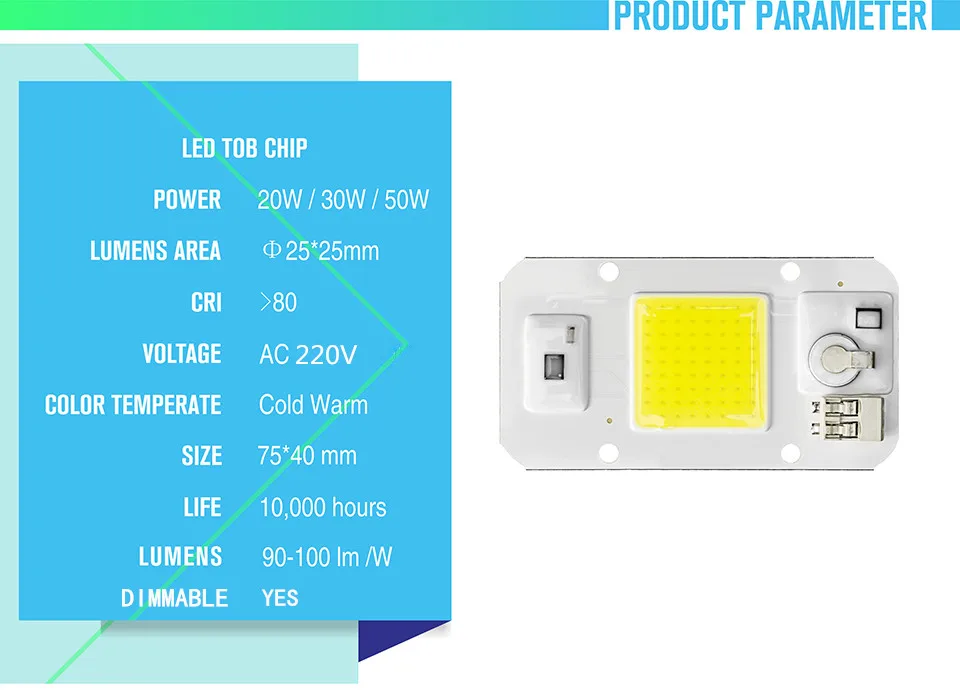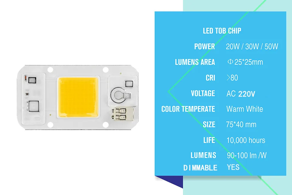 Светодиодный чип с COB матрицей, приглушаемая лампочсветильник теплого и холодного белого света, не требует драйвера, для Светодиодный ных точечных прожекторов сделай сам, 5 шт., 20 Вт, 30 Вт, 50 Вт
