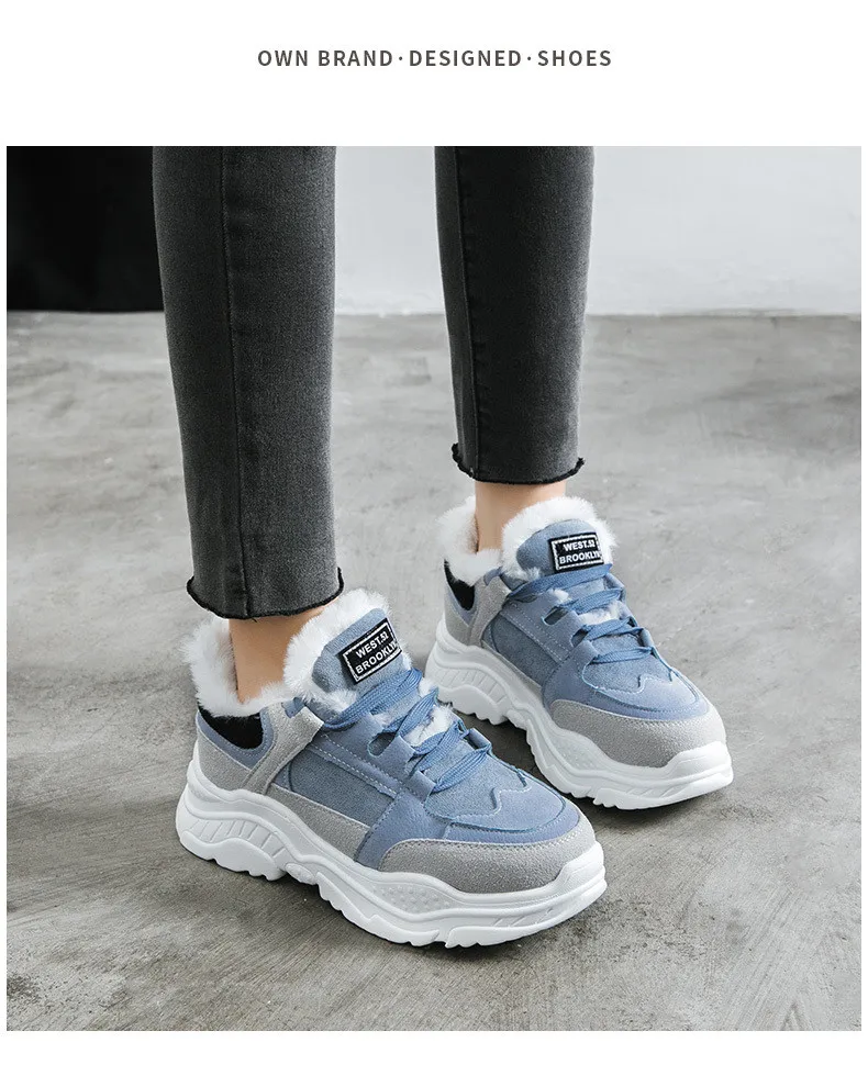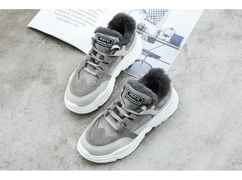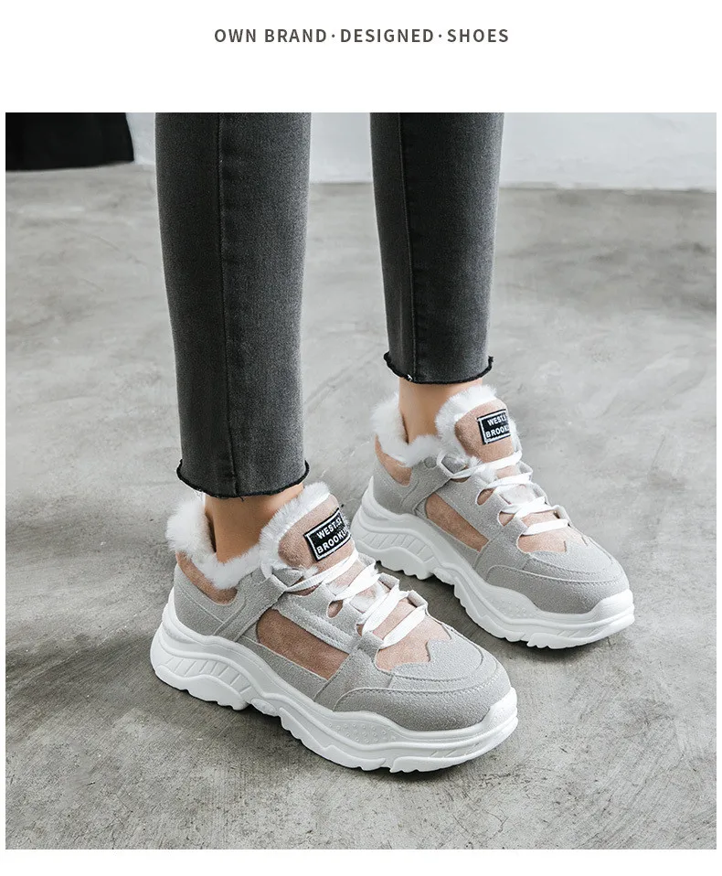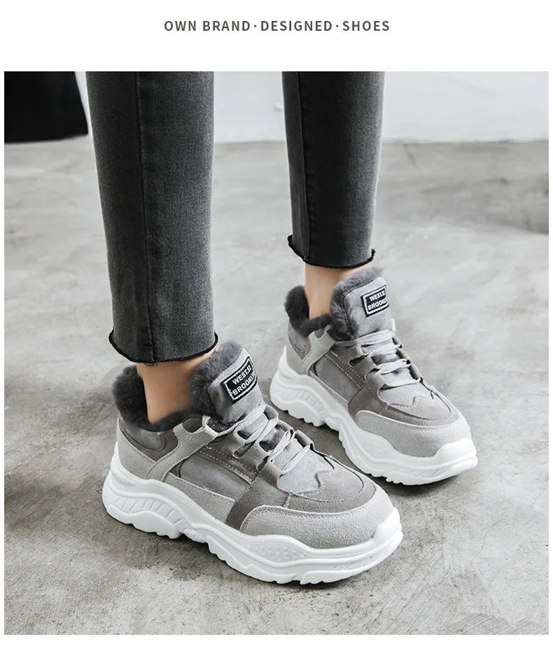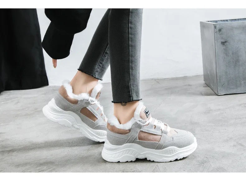 Женская зимняя обувь; кроссовки на платформе с густым мехом и плюшем; женские зимние ботинки; женская повседневная обувь; зимние сапоги из искусственной замши на каблуке зимняя женская обувь женские ботинки