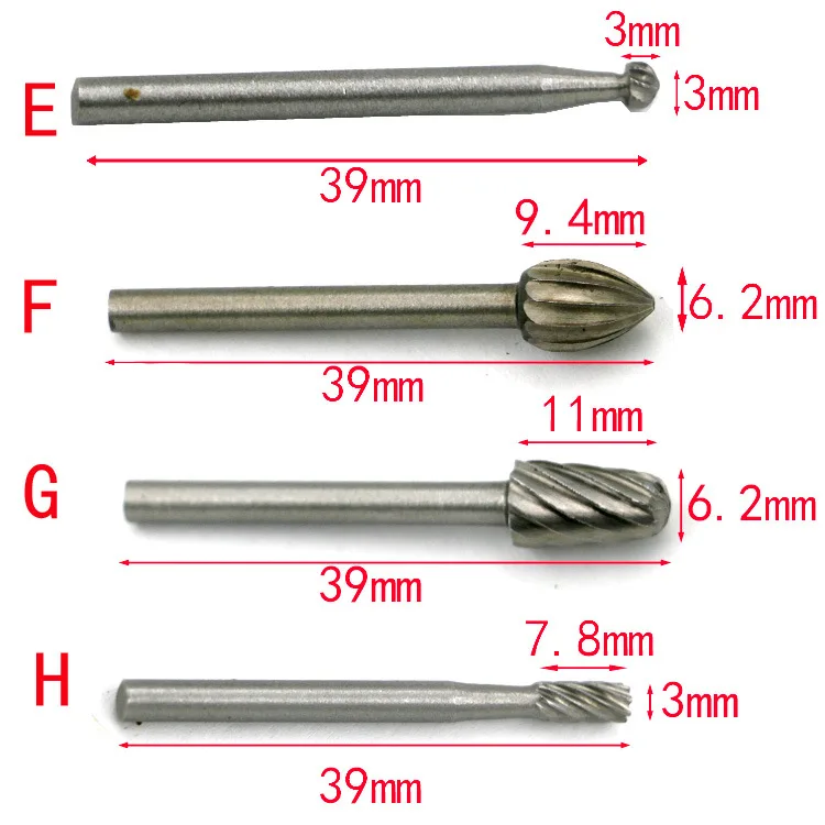 Точное позиционирование электродрели. 10 шт. высококачественных роторных пилок для роторных инструментов Хвостовик: 3 мм Материал: быстрорежущая стальПримечание: Из-за измерения вручную и целевой шкалы возможны небольшие отклонения.
