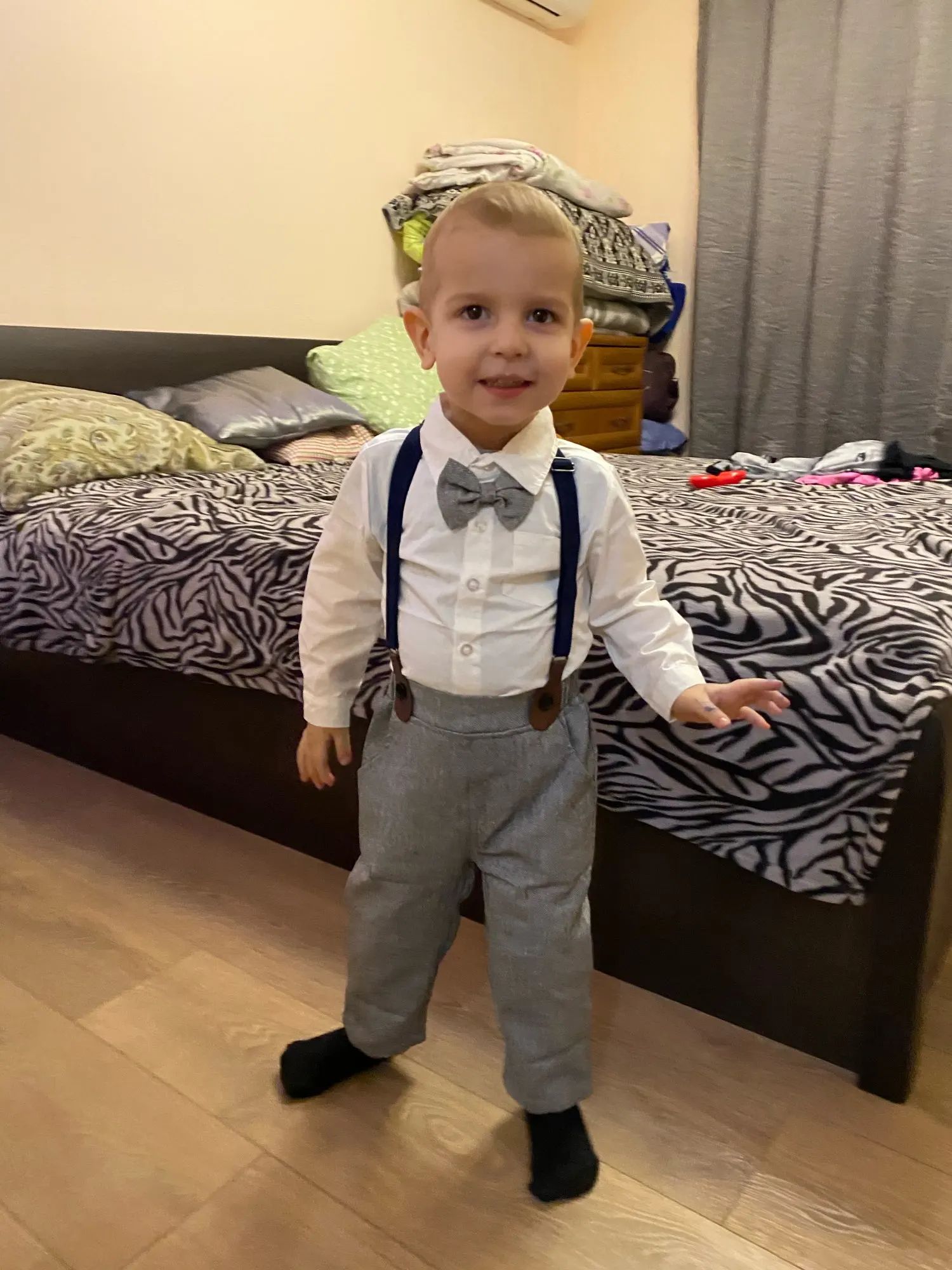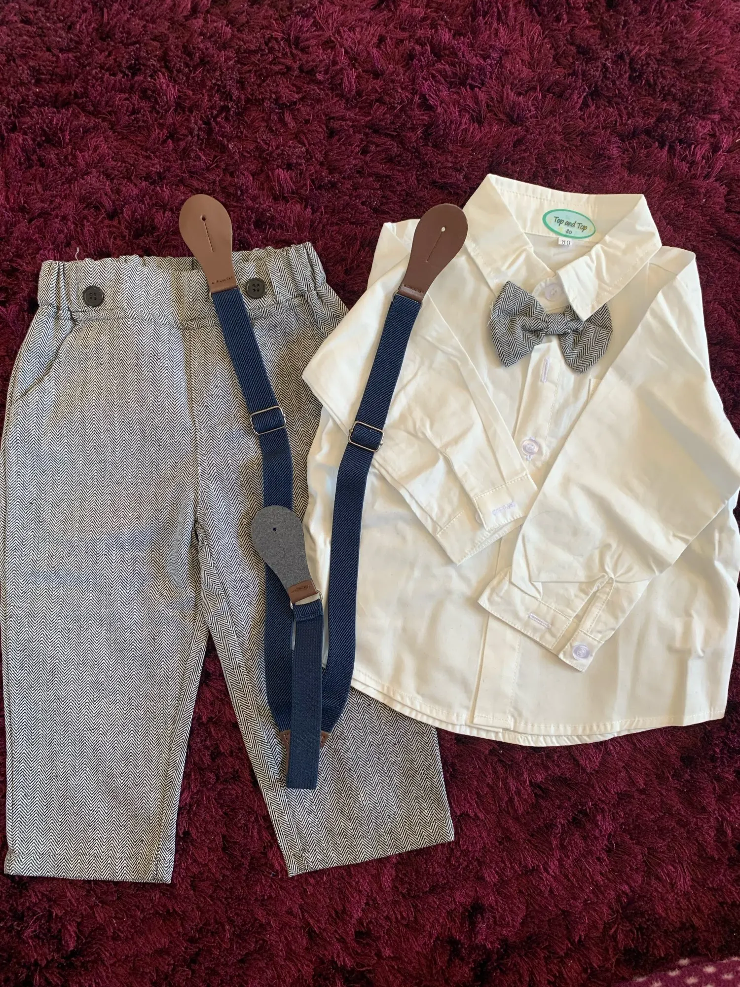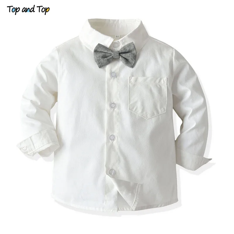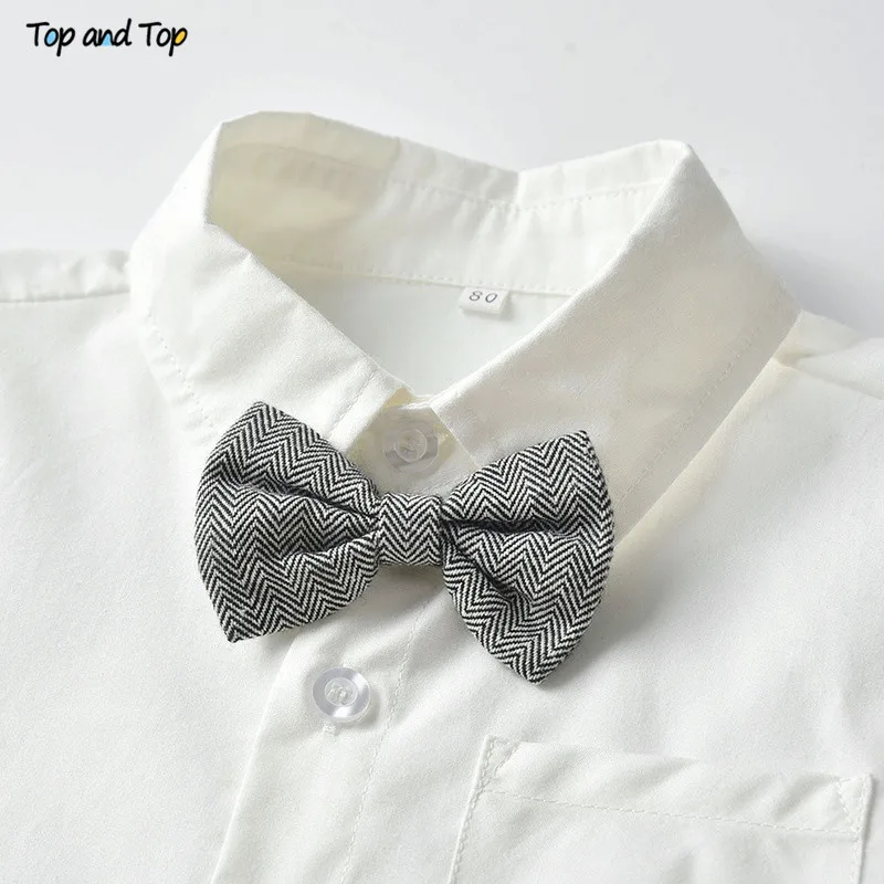 Комплект одежды для мальчиков из 2 предметов, белая рубашка с бантом и длинным рукавом + брюки