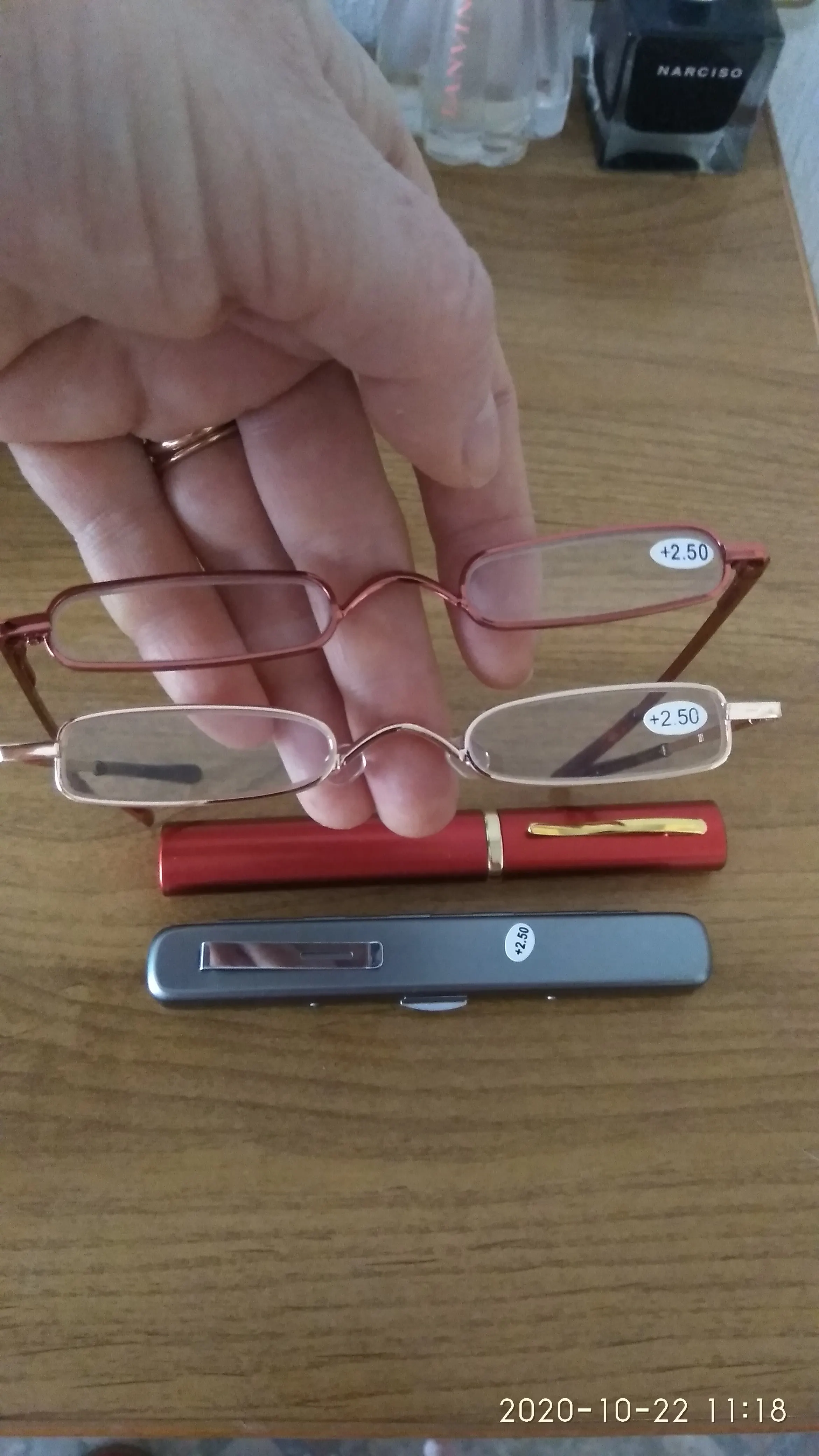 Компактные очки в прочном футляре. Для длительного чтения, конечно не удобны, но прочитать ценники в магазине, надписи на упаковках и др. подходят с учётом возможности постоянной переноски при компактности, незначительного веса и защищенности в металлическом прочном корпусе. При этом товар пришел достаточно быстро, был объединен отправителем с другим товаром, трек прослеживался на всём пути. Единственное огорчение смогла принести только Почта России - заповедник совка.