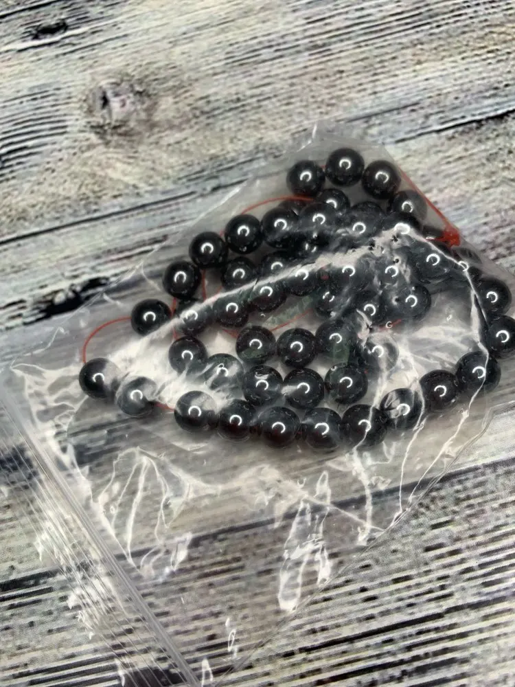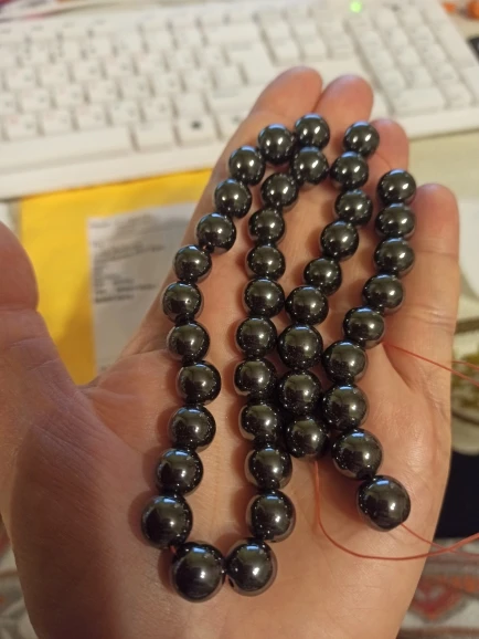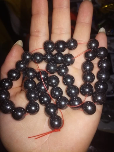 красивые, тяжёлые бусы (бусины на нитке) выглядят, как на фото:чёрные, блестящие. но они не магнитятся. это не гематит.