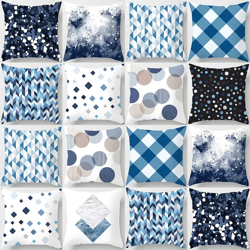 Синий с геометрическим рисунком декоративная подушка для дивана наволочка полиэстер 45*45 подушка домашний Декор автомобилей мультипликационным мотивом 40507