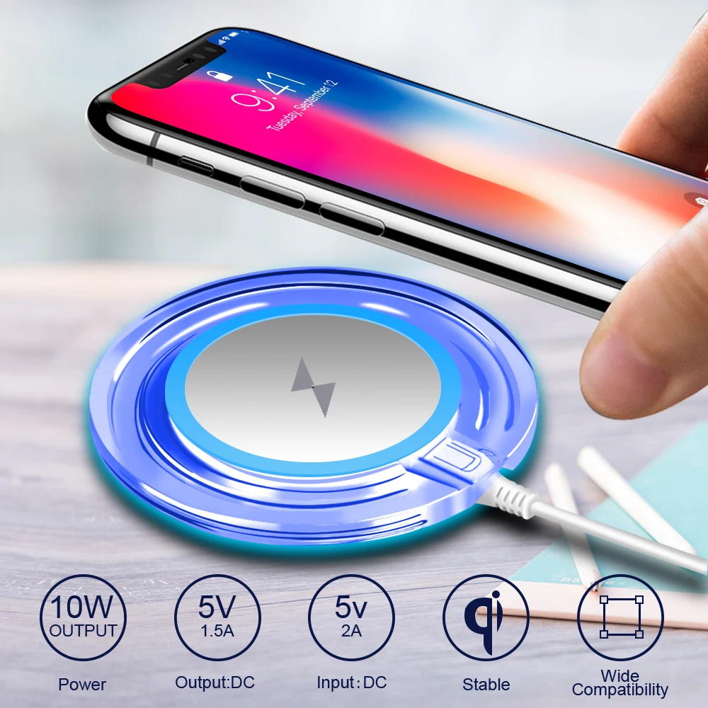 Быстрое беспроводное зарядное устройство 10 Вт для Samsung Galaxy S10 S9S9 + S8 Note 9, USB зарядная подставка Qi для iPhone 11 Pro XS Max XR X 8 Plus