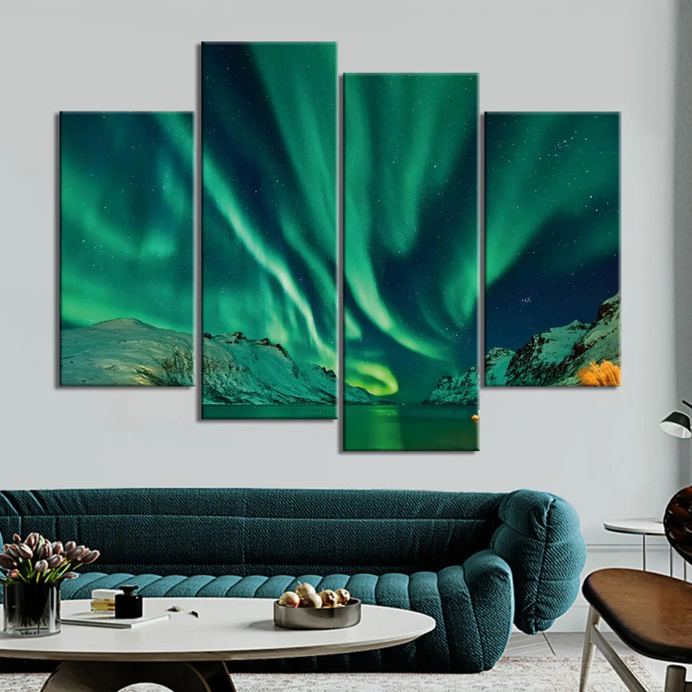 Художественные картины HD Печать на холсте на стене 4 шт. Аврора природа картины Декор для дома плакаты рамки
