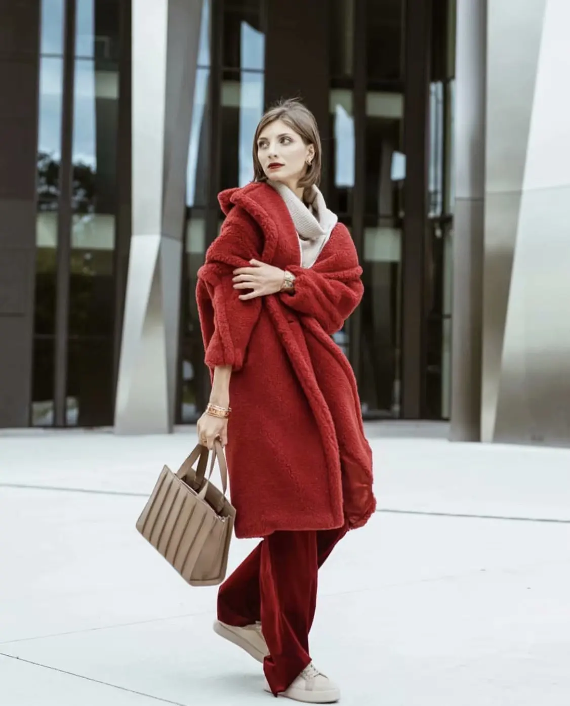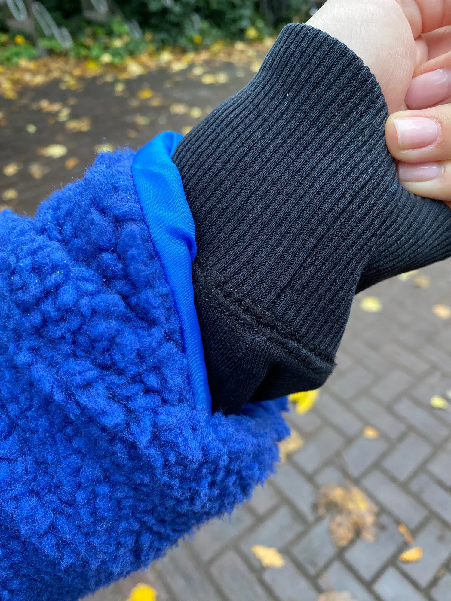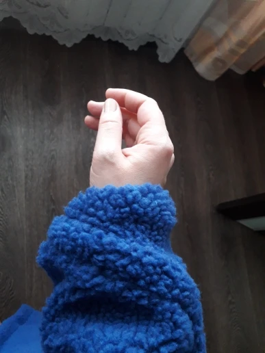 Ткань плотная, теплая, цвет точно такой же, как на изображении, только подкладка сильно пришита на манжетах, но в целом она милая.