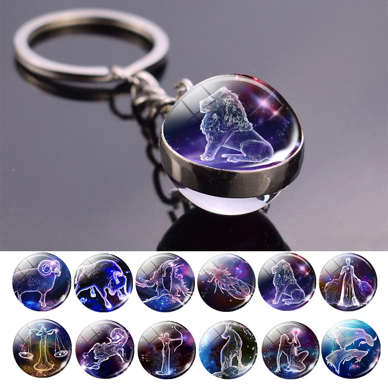 Брелок со знаками Зодиака, со стеклянным шаром, для мужчин и женщин...