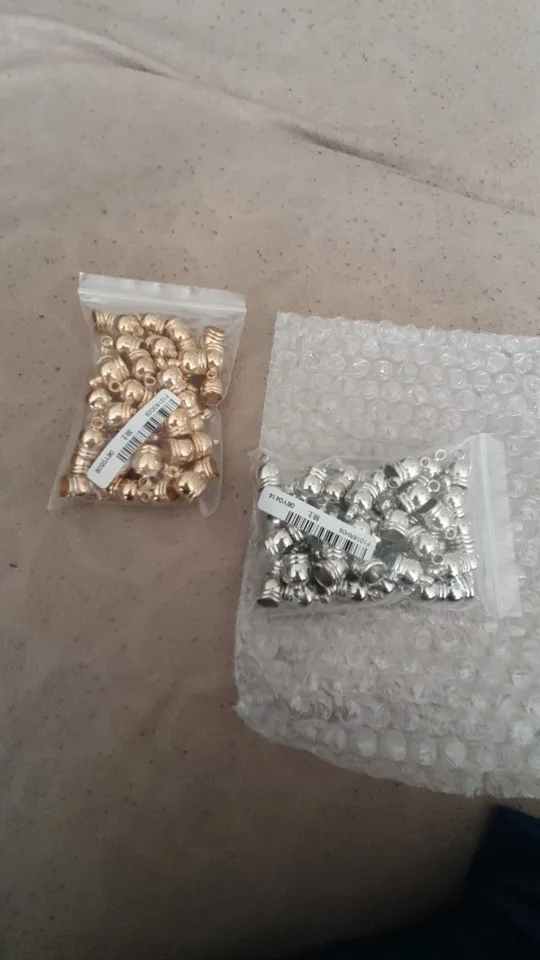 Пластиковые крепления, имитирующие металл. Не взяв в руку отличить невозможно) Ровно 50 штук, как и заказывала. Внутри пустые (на фото видно) то есть спец. креплений внутри нет, и внутрь наконечника предмет надо будет вклеивать. Пришли все целые и вовремя. Всем советую к приобретению)