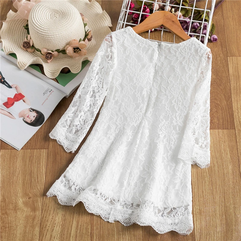 Кружевные весенне-осенние детские платья принцессы для девочек с дл...