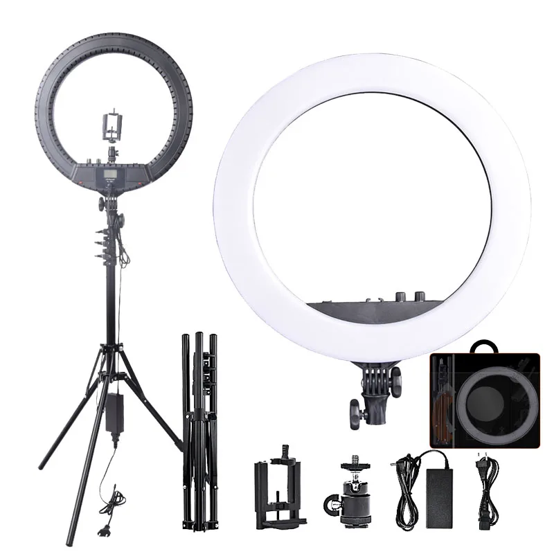 Светодиодный кольцевой светильник Fosoto RL-18BII 3200-5600K, светильник со штативом и батарейками для камеры, фото, Youtube, студии, видео, макияжа