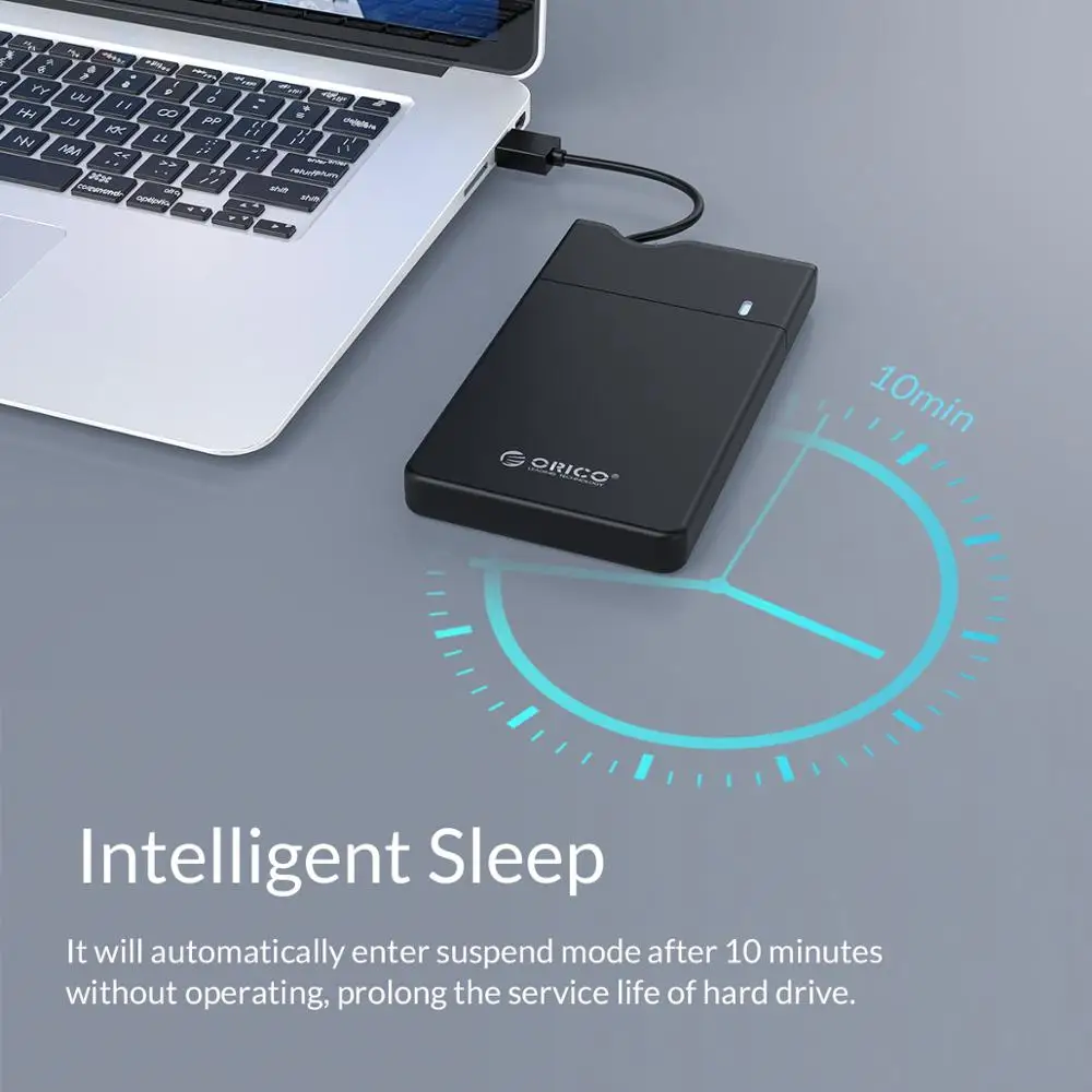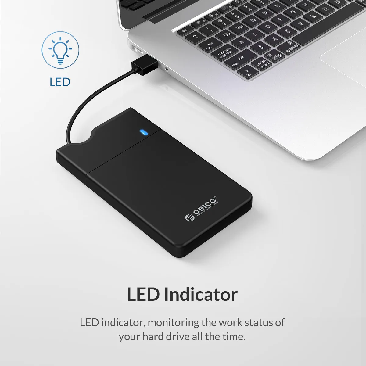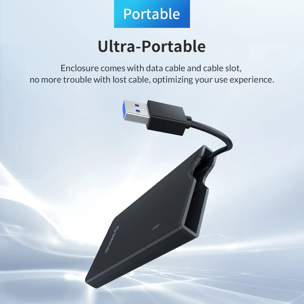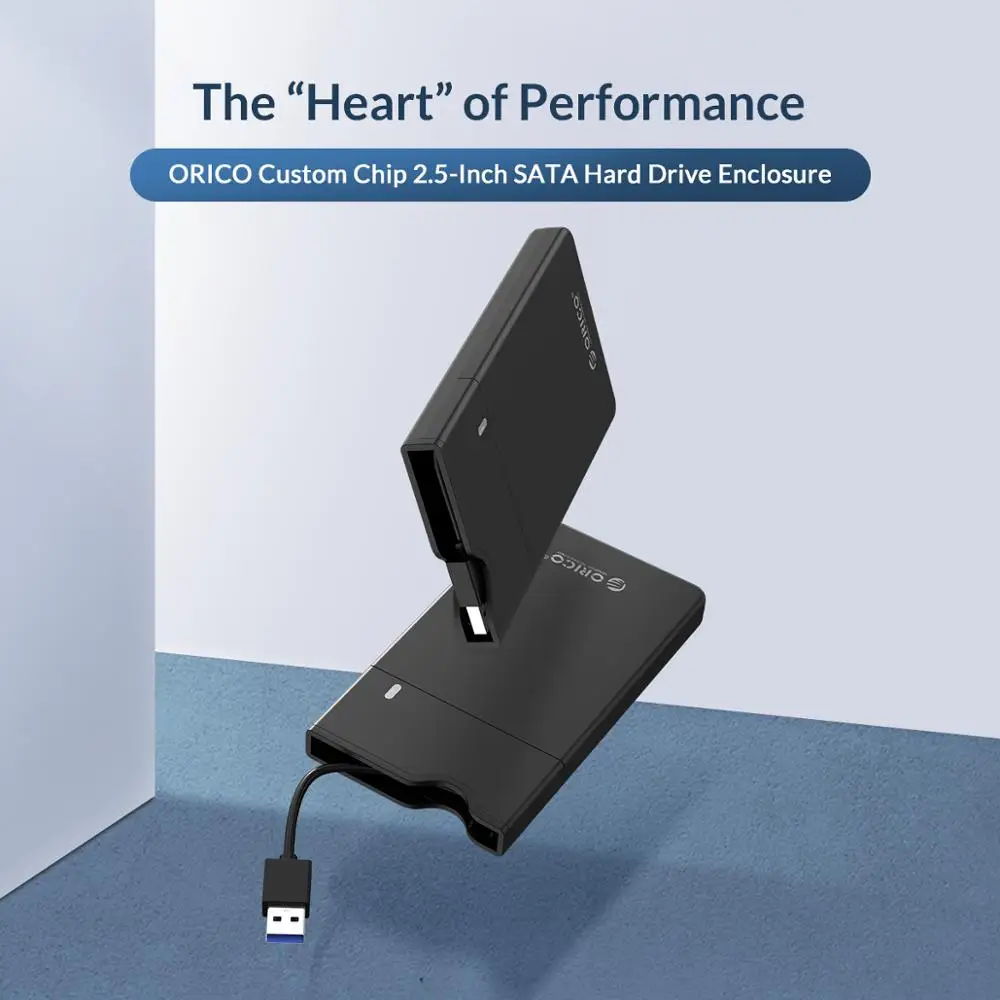 Корпус жесткого диска ORICO 2,5 дюйма с SATA на USB 3,0, со встроенным кабелем для передачи данных, чехол для жесткого диска с поддержкой 4 ТБ HDD SSD, внешний жесткий диск, чехол