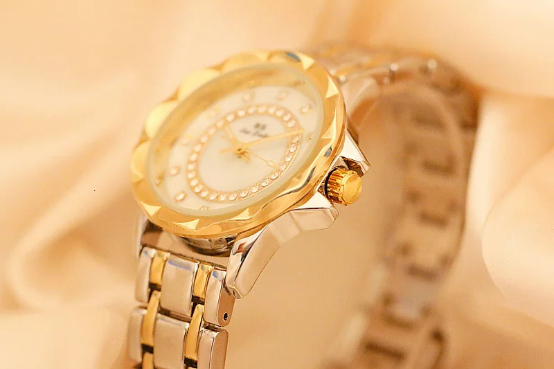 Новые часы для женщин, большие женские кварцевые наручные часы стразы, роскошные женские брендовые золотые часы со стразами, часы