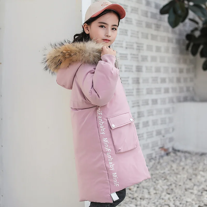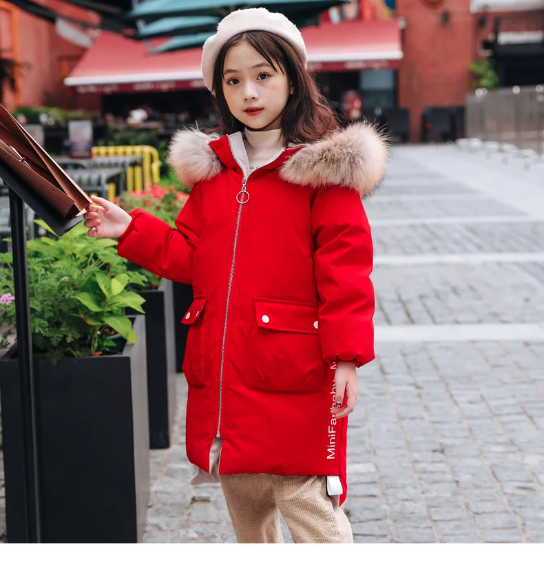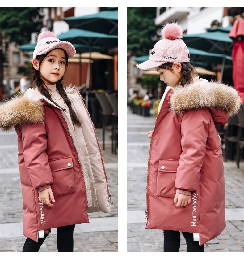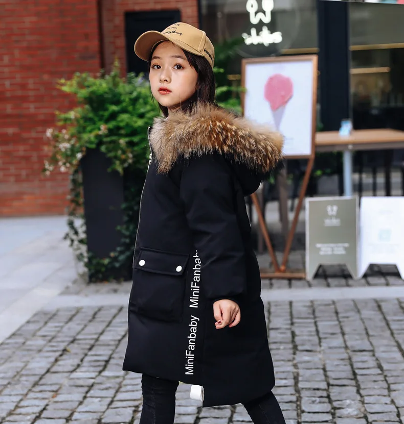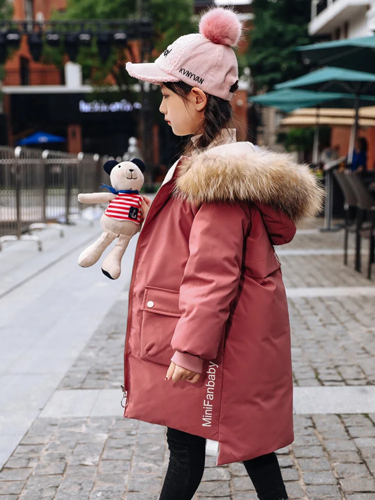 Детское пальто с капюшоном, на 90% белом утином пуху, с большим меховым воротником, зимняя верхняя одежда, От 5 до 9 лет