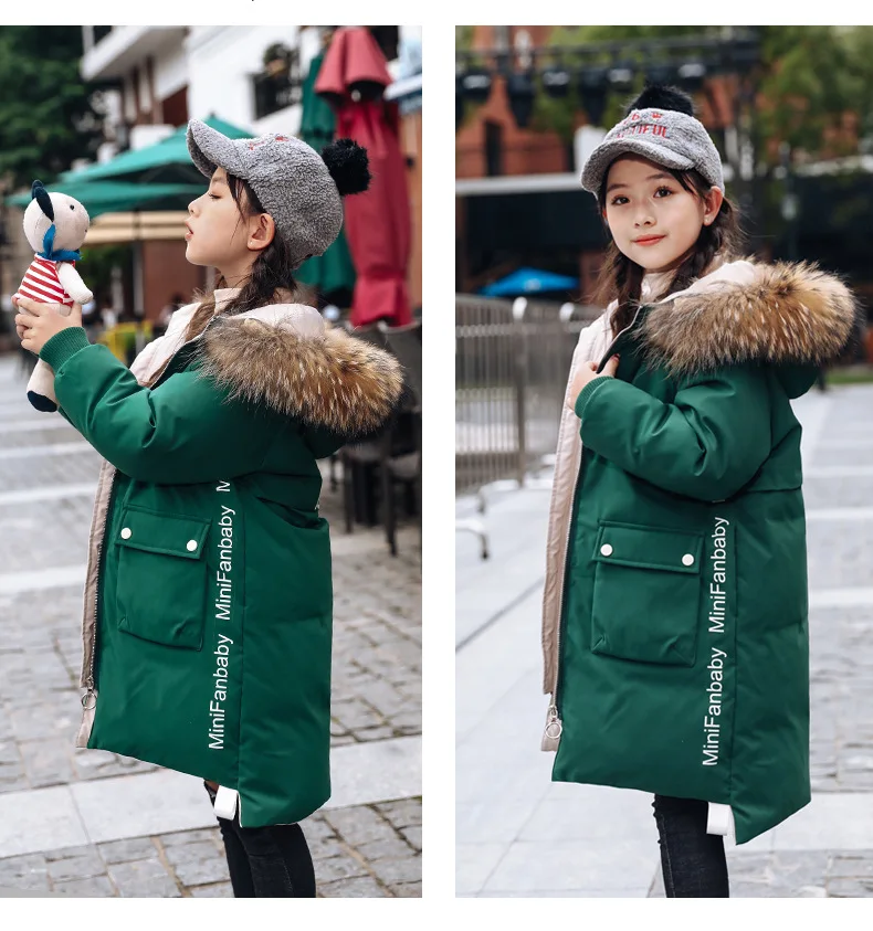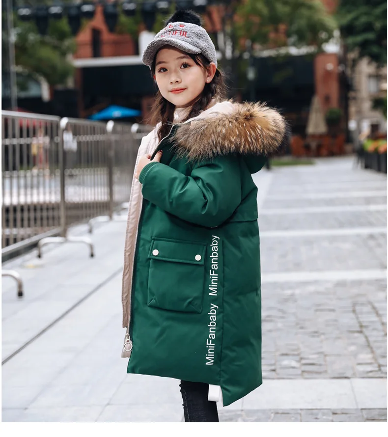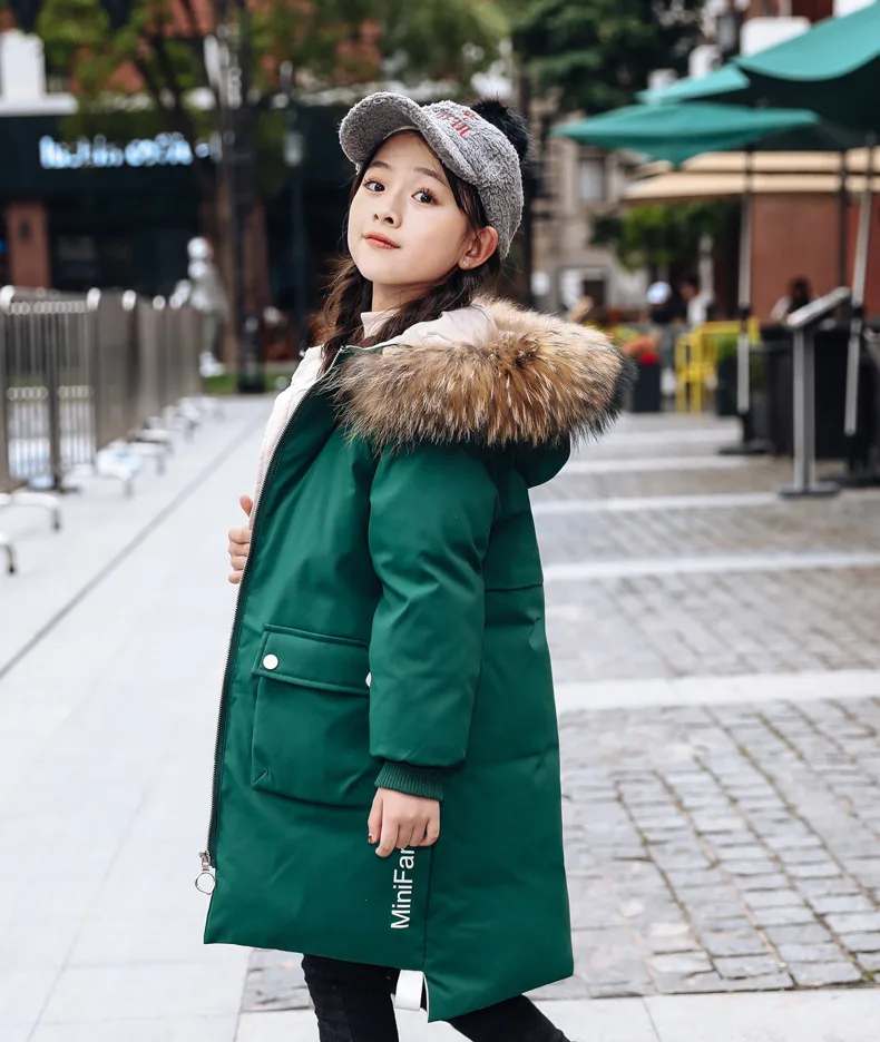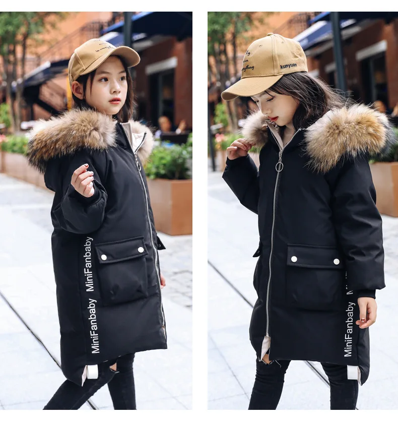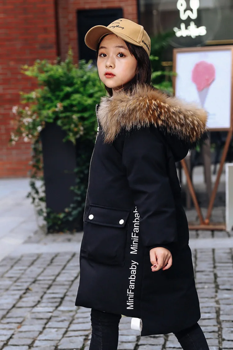 Детское пальто с капюшоном, на 90% белом утином пуху, с большим меховым воротником, зимняя верхняя одежда, От 5 до 9 лет