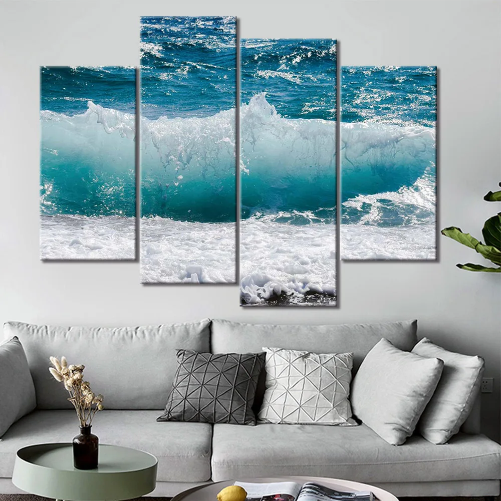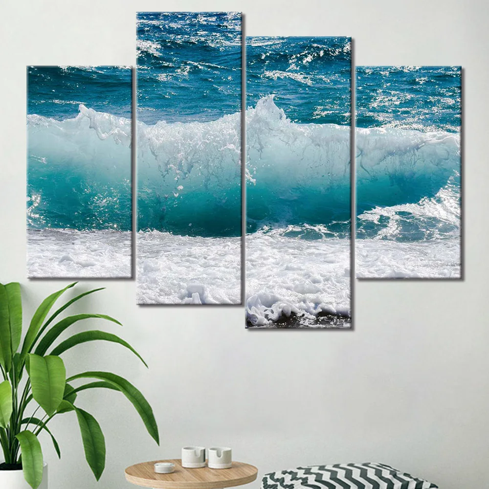 Настенные плакаты и принты, 4 шт., Пляжная волна, Настенная картина на холсте, Настенная картина, домашний декор