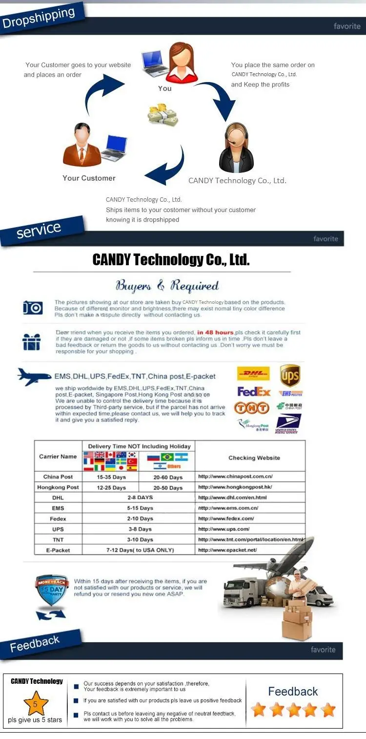 Примечание: 1. Если ваше время подтверждения приближается, и вы все еще не получили посылку, пожалуйста, свяжитесь с нами. Мы продлим срок доставки. 2. Если через 60 дней вы все еще не получили pacle, пожалуйста, свяжитесь с нами, чтобы решить эту проблему. Мы дадим вам полный возврат средств или отправим вам новый. 3. Без споров, пожалуйста: пожалуйста, не применяйте спор в течение 60 дней. Я считаю, что все может быть решено путем общения. . Давайте поддерживать хорошие деловые отношения! Спасибо за поддержку и понимание, желаю вам приятных покупок!