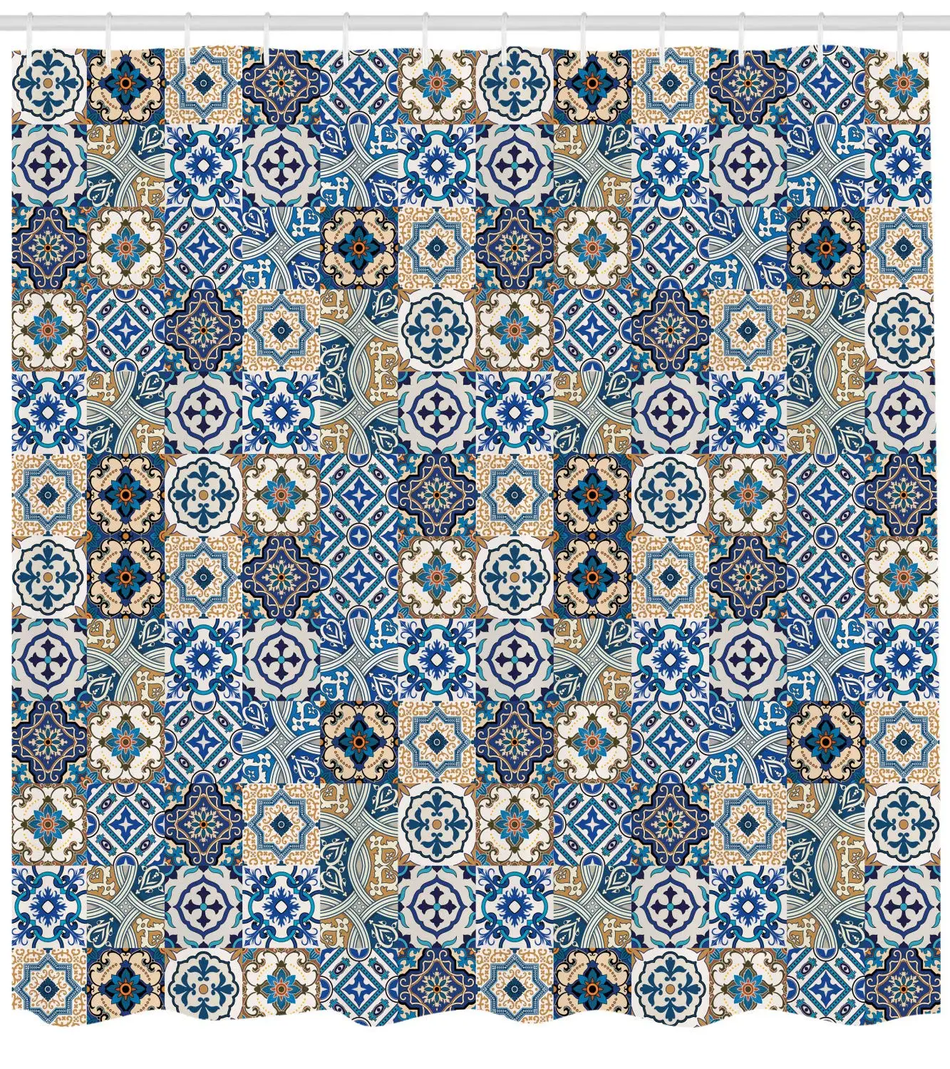Марокканская занавеска для душа с узором, традиционные португальские мотивы Azulejo, восточные кудри, занавески для ванной комнаты, декоративный набор