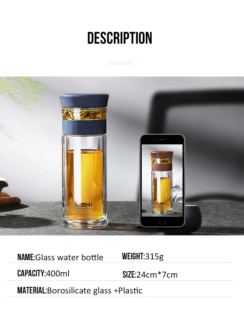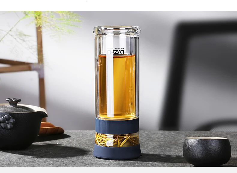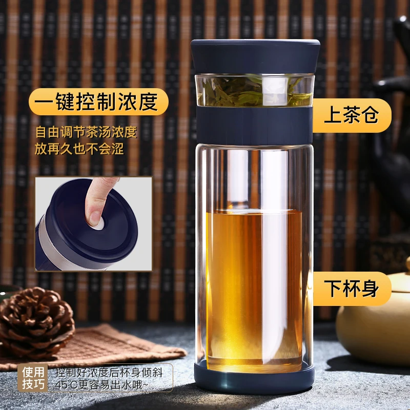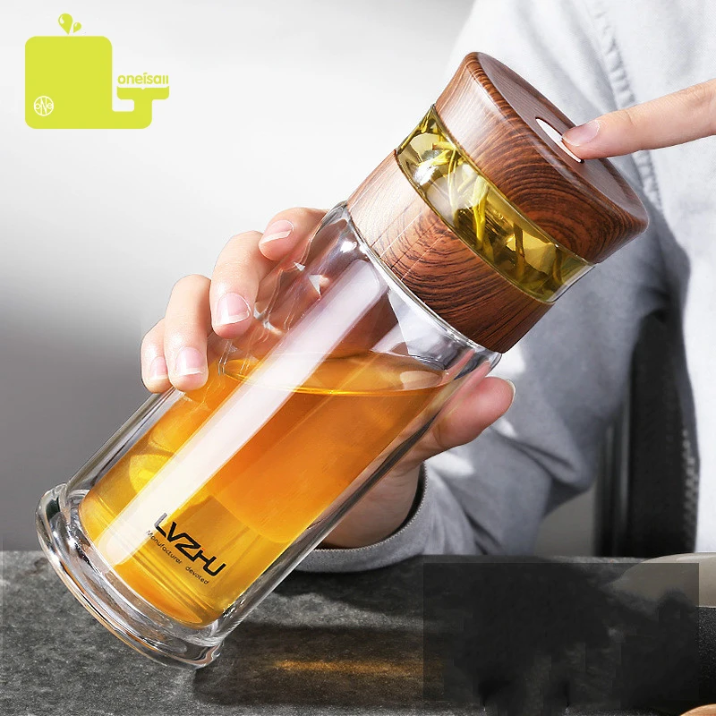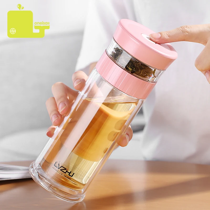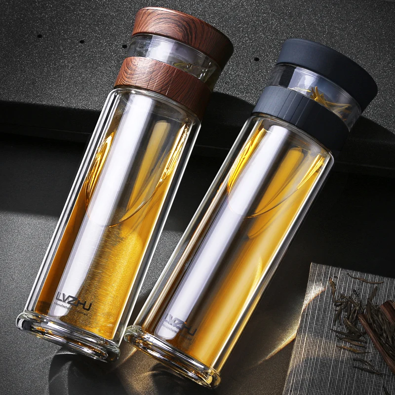 Портативное двойное боросиликагелевое стекло 400 мл, Фотоэлементы воды с фильтром крышки, автомобильная чашка, креативный подарок, стакан