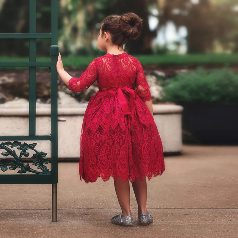 Детское кружевное платье с вышивкой, на Возраст 3-8 лет