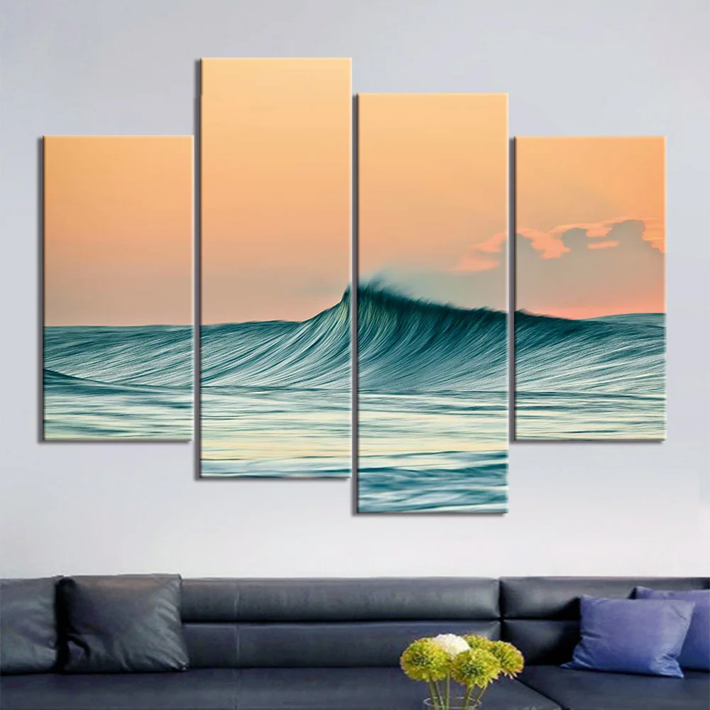 Постер художественные картины холст постер печать 4 панели пляжная волна Картина домашний декор настенное искусство