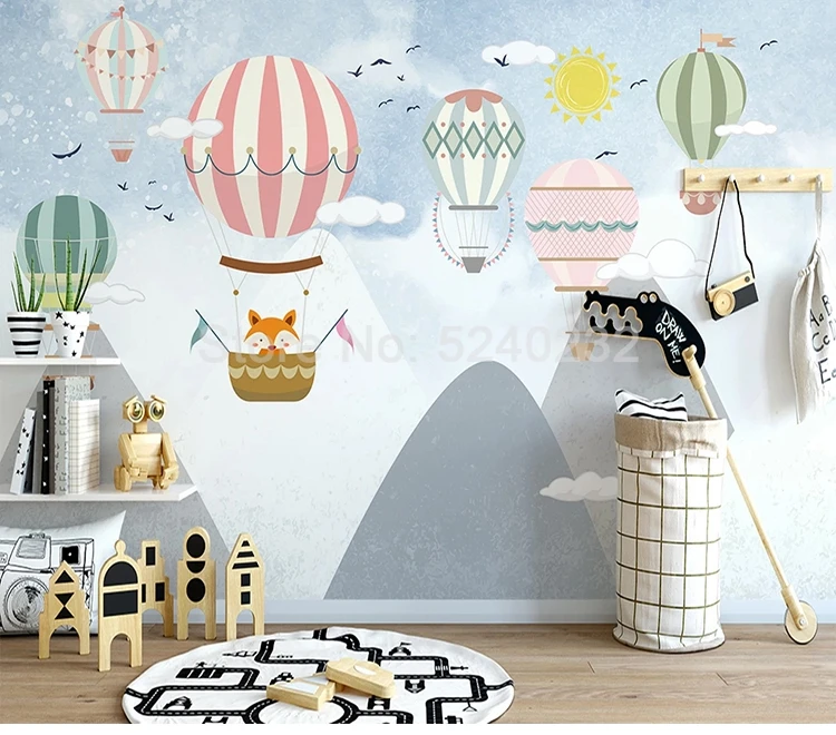 Пользовательские 3D фрески мультфильм розовый воздушный шар солнце ...