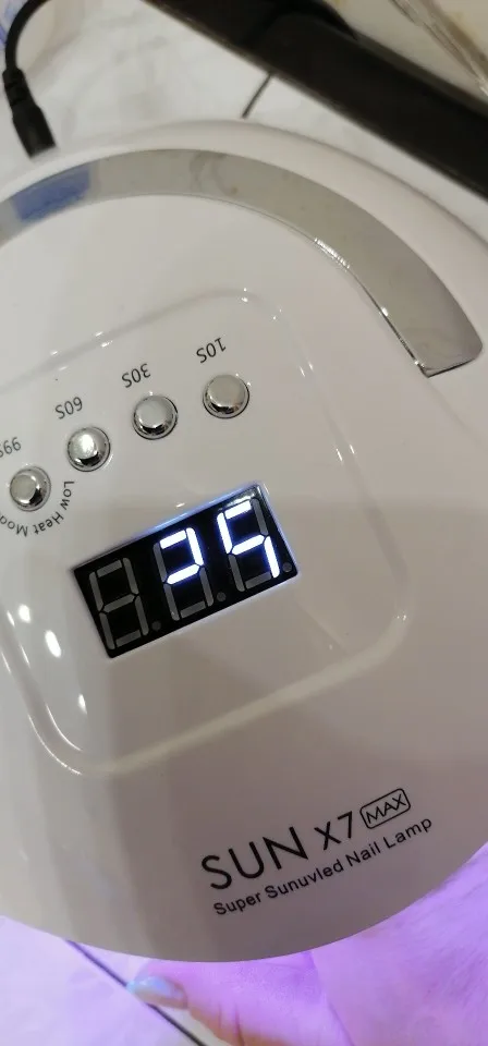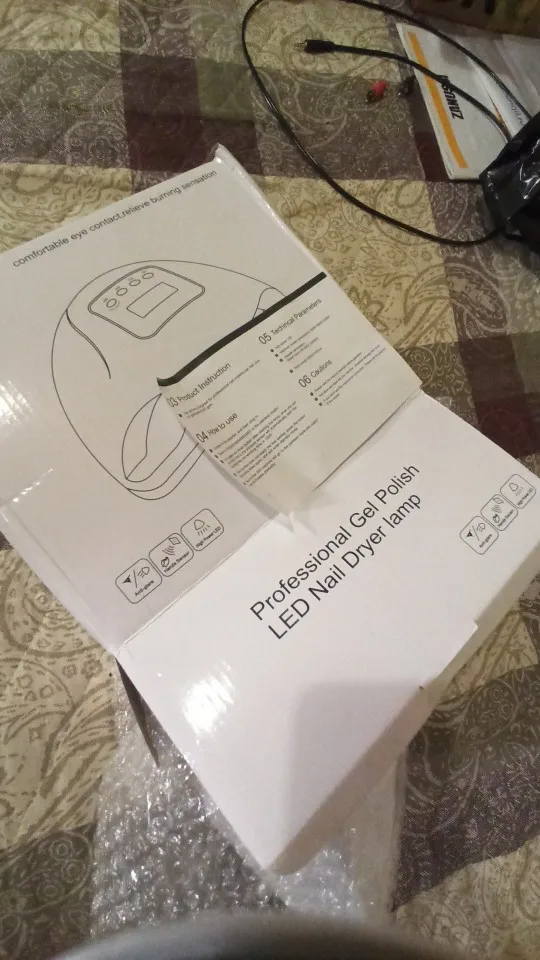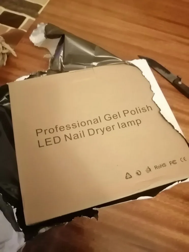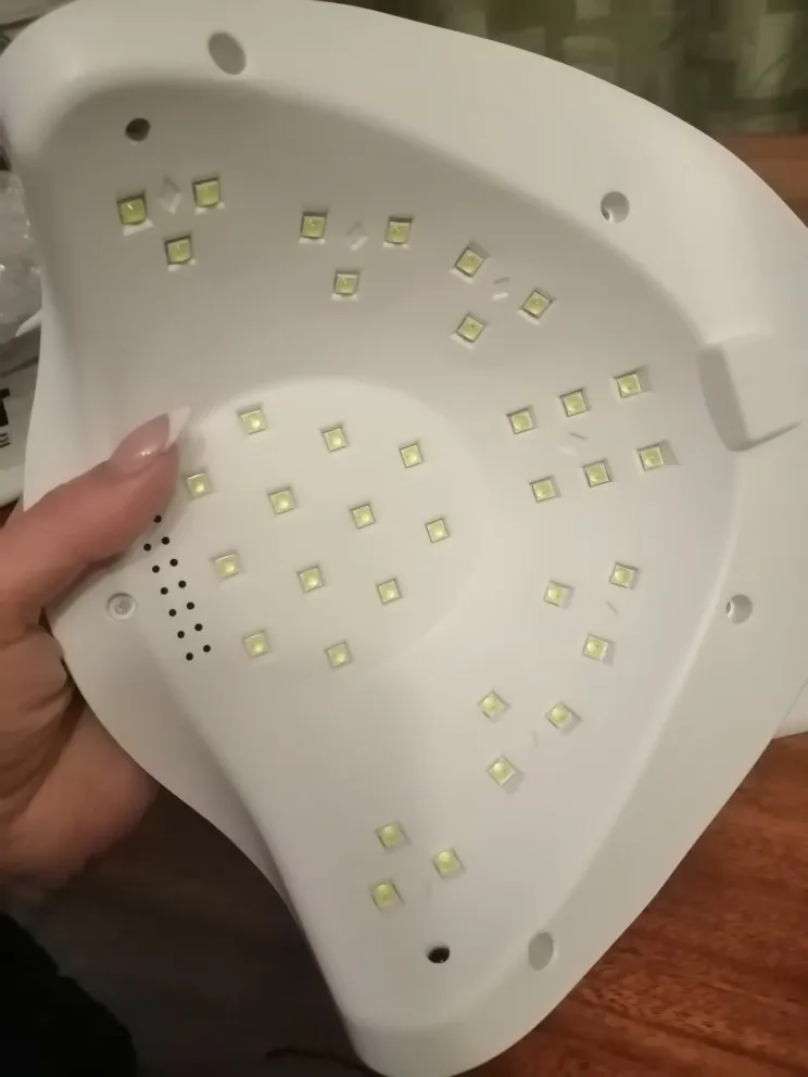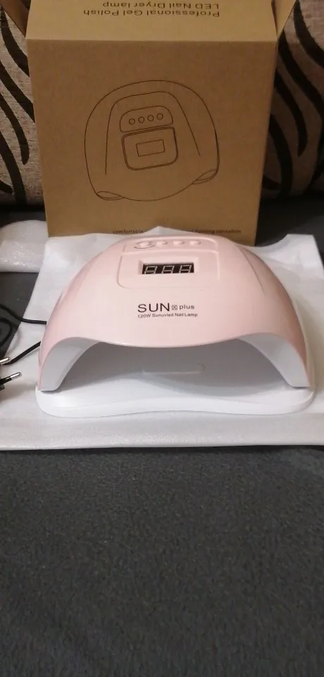 Дампа на первый взгляд хорошая, все кнопки и сенсор работают. Лампа ооочень легкая, посылка вместе с коробкой весила около 450 грамм. Шнур был в пыпурчатом пакете, чтобы, видимо, не царапалась лампа (учли старые отзывы). Лампа пришла абсолютно целая без трещин, царапин, сколов. Как сушит напишу позже, тк нет пока гель-лаков. Но провод безбожно короткий, думаю даже до стола не достанет, поэтому если соберётесь брать, то обзаведитесь удлинителем, а так больше никаких нареканий пока нет)