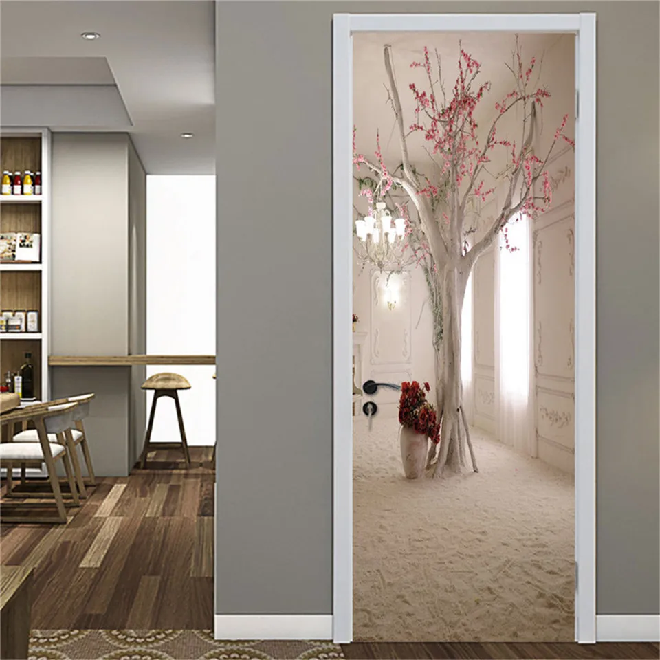 3D наклейка на дверь, деревянные клейкие водостойкие обои для дверей, гостиной, спальни, плакат, DIY настенные наклейки, домашний декор, наклейка