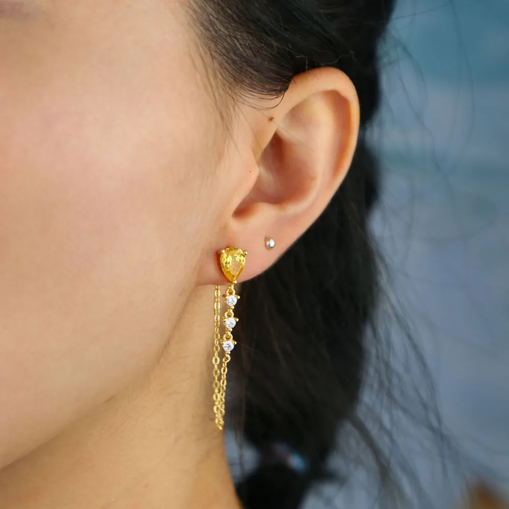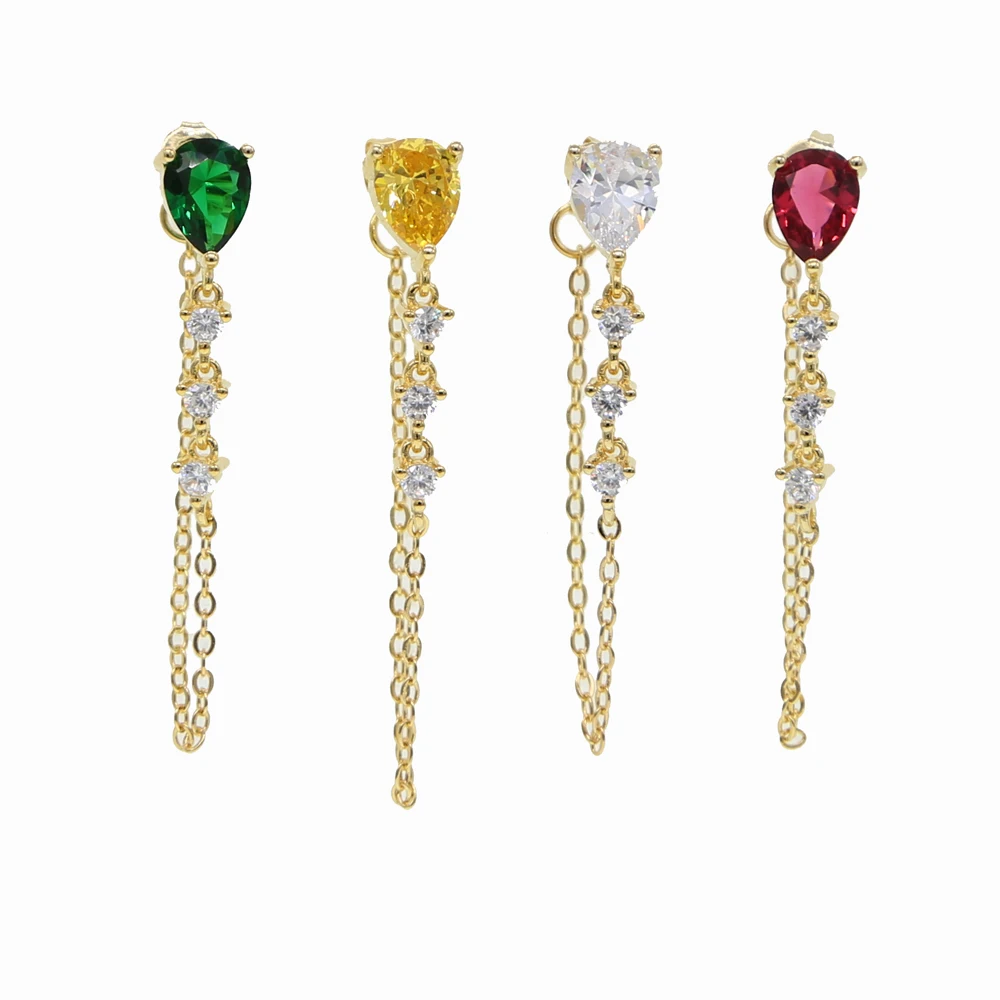 Серьги-кисточки в форме капли, с фианитом
