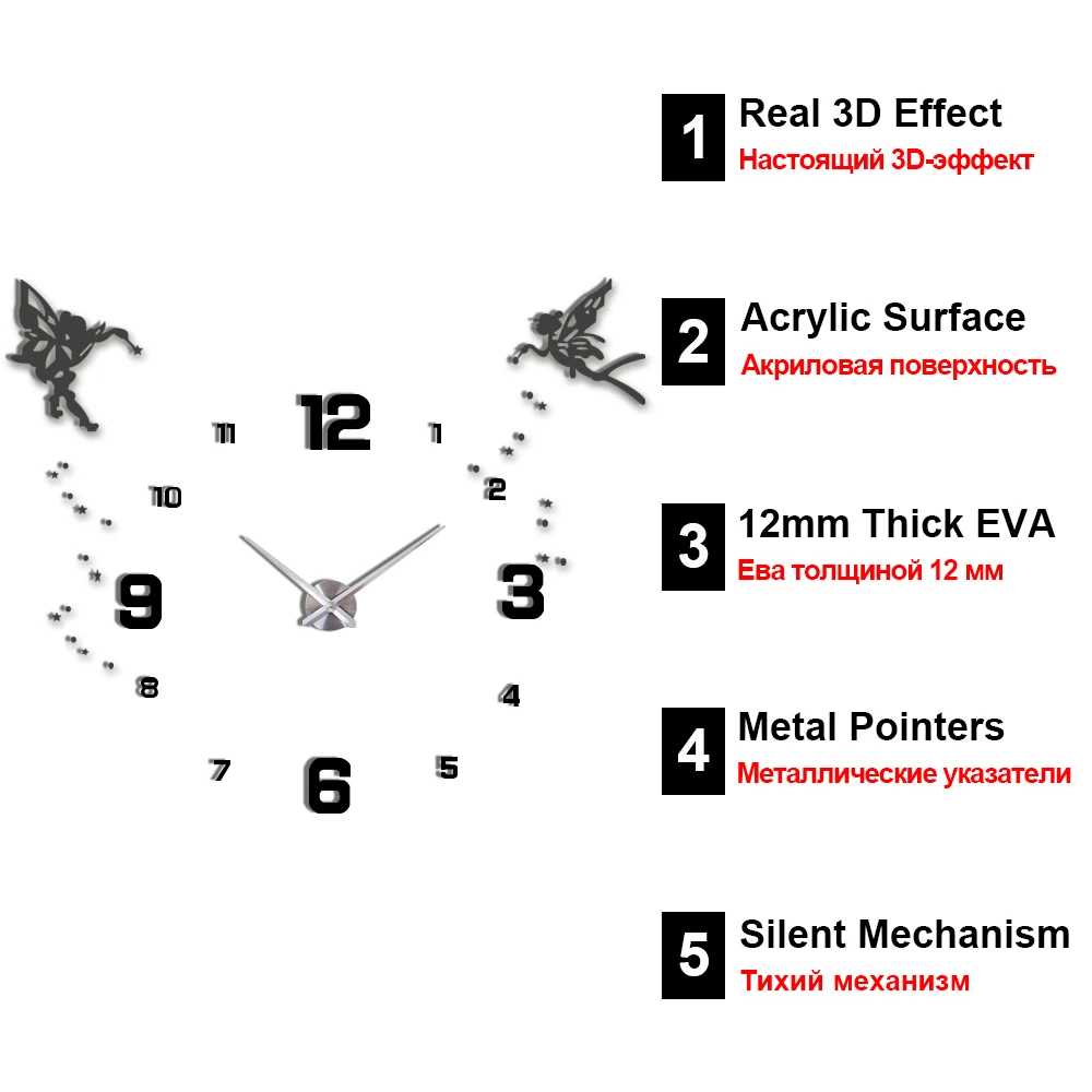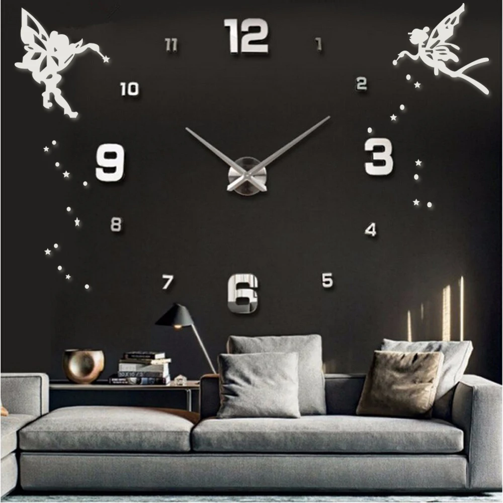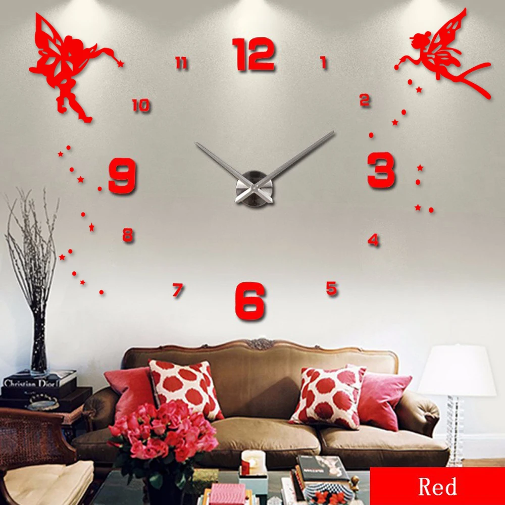 Акриловые большие настенные часы, 47 дюймов, самоклеящиеся, ангел наклейка-часы, сделай сам, 3D, кварцевые часы, цифровые часы для гостиной, домашний декор
