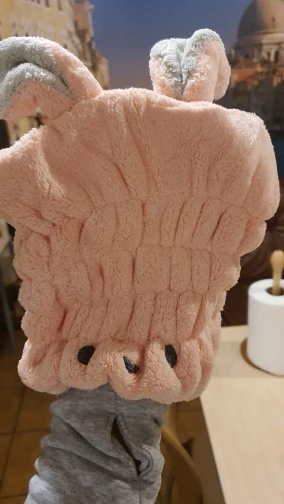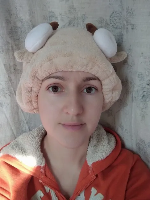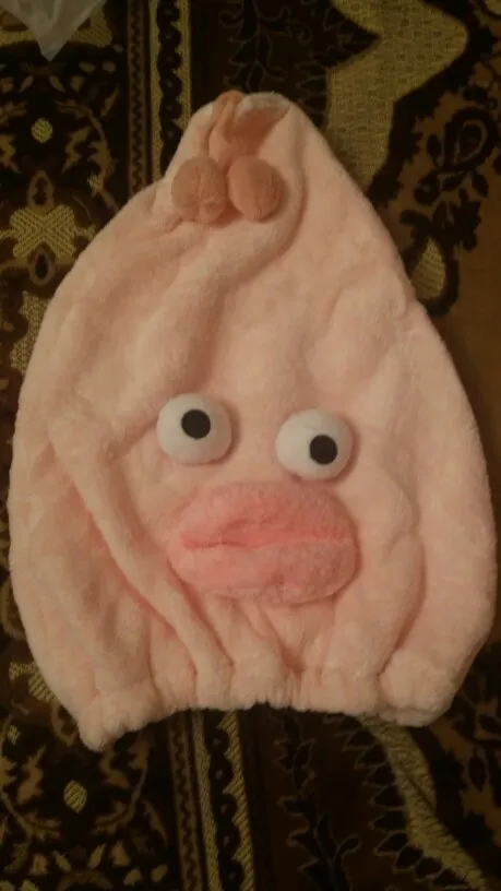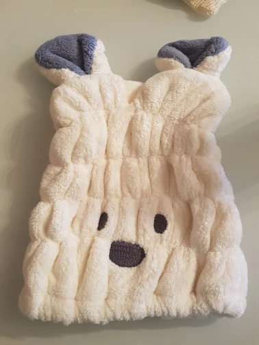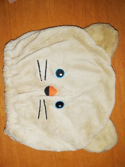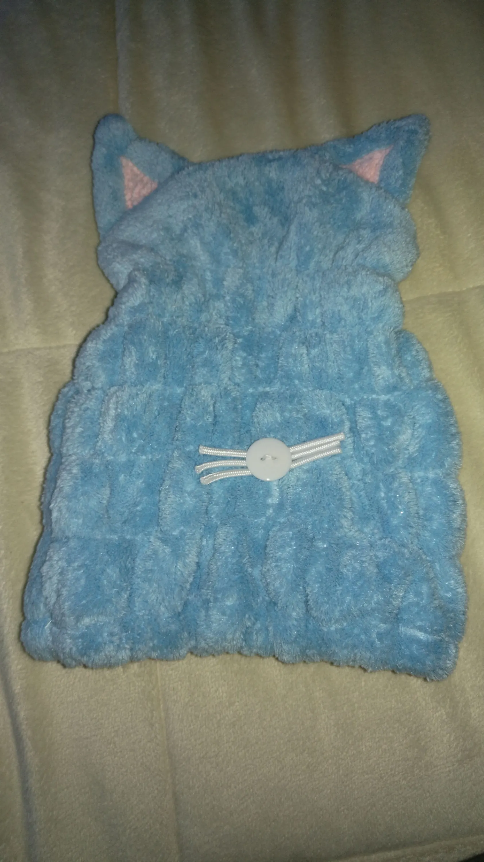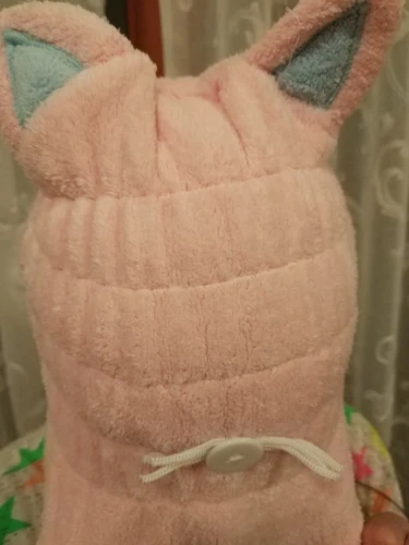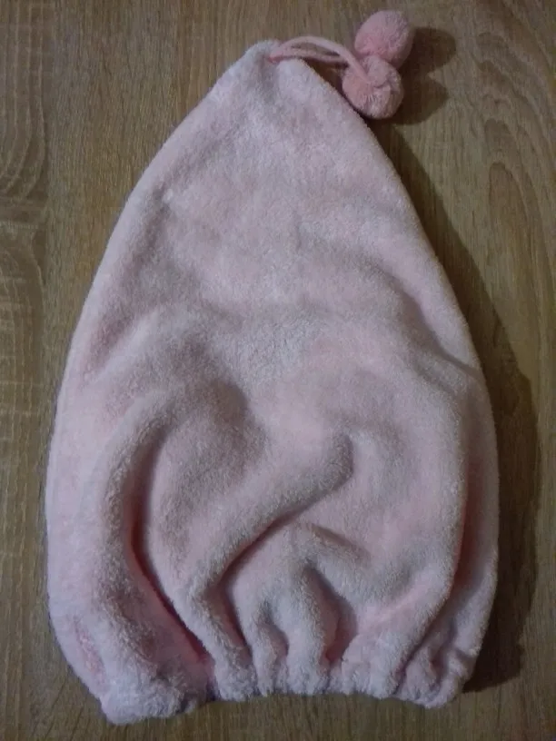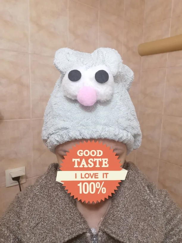 Получила свой заказ и обнаружила внутри записочку от продавца с просьбой постирать товар перед употреблением, так что на фото шапочка уже стираная. Один раз уже использовала после мытья головы, мне было гораздо удобнее заниматься своими делами, чем с полотенцем (у меня длинные волосы, доходят до поясницы). Я довольна, рекомендую товар :)