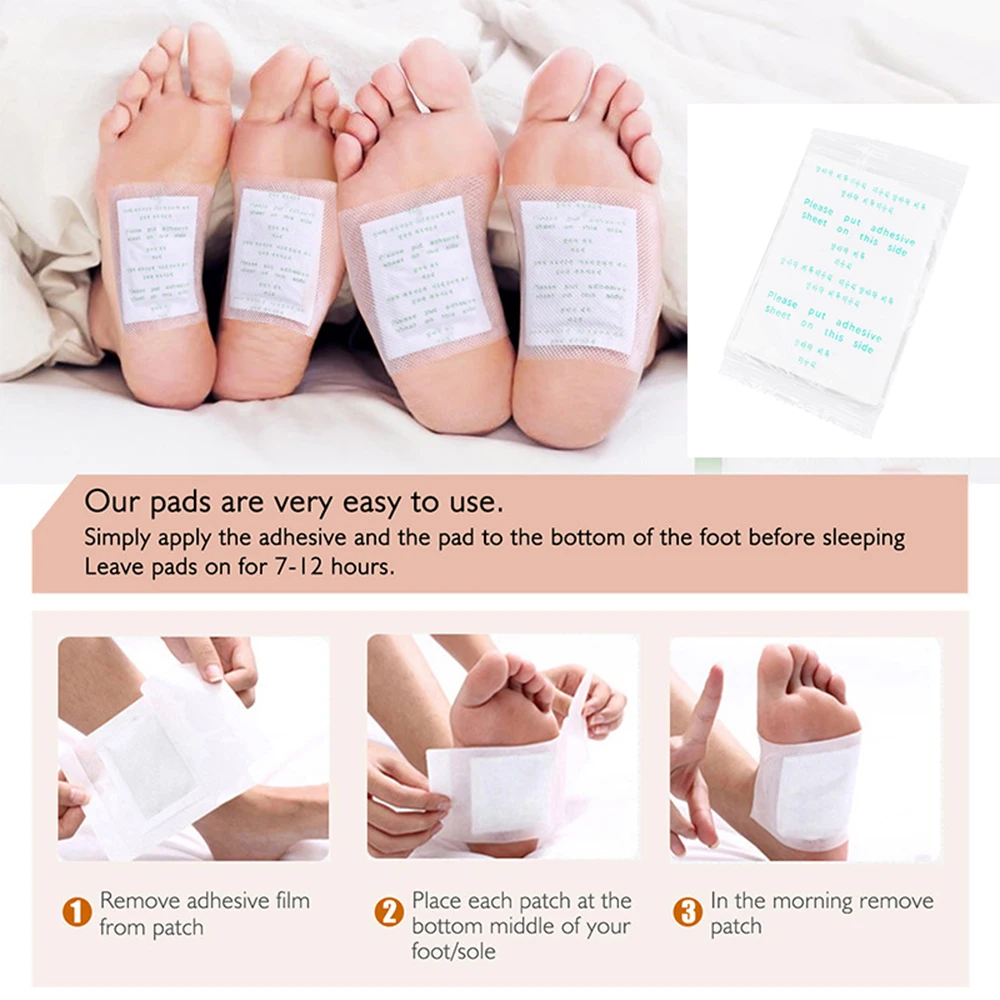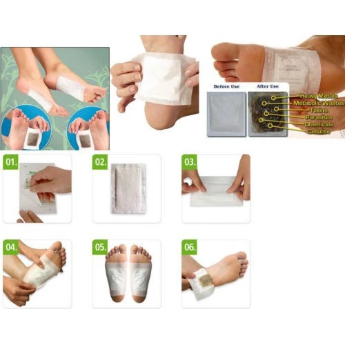 1. высвобождение нежелательных токсинов 2. увеличьте уровень энергии 3. уменьшает боли, боли, головные боли и усталость 4. снять стресс 5. улучшите метаболизм 6. улучшите кровообращение 7. улучшение похудения 8. полностью сдержанный-работает во время сна 9. простые и простые в использовании направления для использования: 1. нанесите ALIVER Пластыри для детоксикации за час до сна. 2. Вымойте и высушите ноги или части тела перед нанесением ALIVER Пластыри для детоксикации. 3. Возьмите один клейкий лист и медленно Отделите бумагу. 4. Поместите подушечку на клею, чтобы «положить клейкий лист на эту сторону» и поместите на подошву ваших ног или желаемую область другой части тела. (Носки можно носить при необходимости) 5. Носите в течение 8-10 часов, затем удалите подкладку. 6. Протрите поверхность влажным полотенцем, пока он не станет липким. 7. Использованные пластыри будут выглядеть темно-зеленоватыми или сероватыми, поскольку они поглощают токсины и отходы вашего тела. 8. Продолжайте использовать каждую ночь, пока обесцвечивание пусковой площадки не затухнет. 9. При использовании ALIVER патчи показывают следы осветления, наносите один или два раза в неделю для обслуживания.