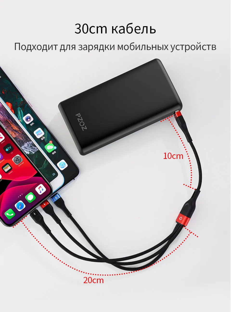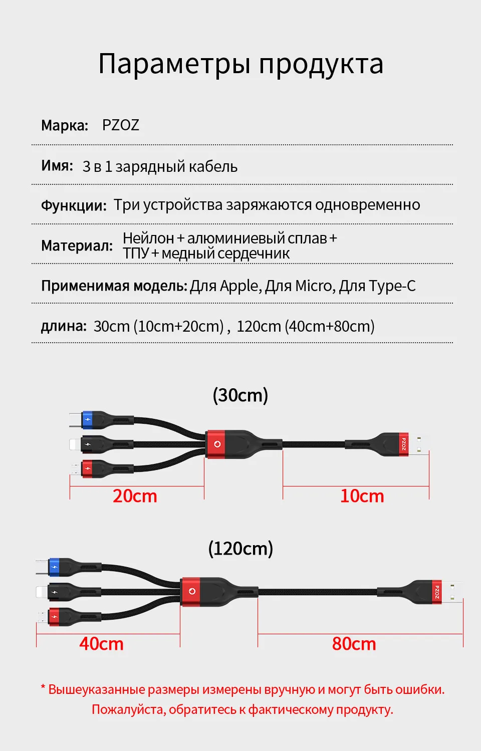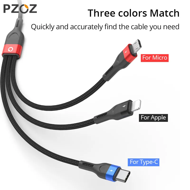 PZOZ 3 в 1 USB кабель Micro USB C адаптер для быстрой зарядки Microusb type-C телефон кабель для зарядного устройства Тип C для iPhone 11 pro X Max Xr 7 6s plus samsung S10 s9 Xiaomi mi 9 redmi note 7 8 шнур