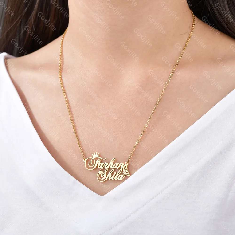Goxijite индивидуальное двойное имя Корона Бабочка ожерелье для женщин нержавеющая сталь Начальная буква цепь ожерелье ювелирные изделия подарок
