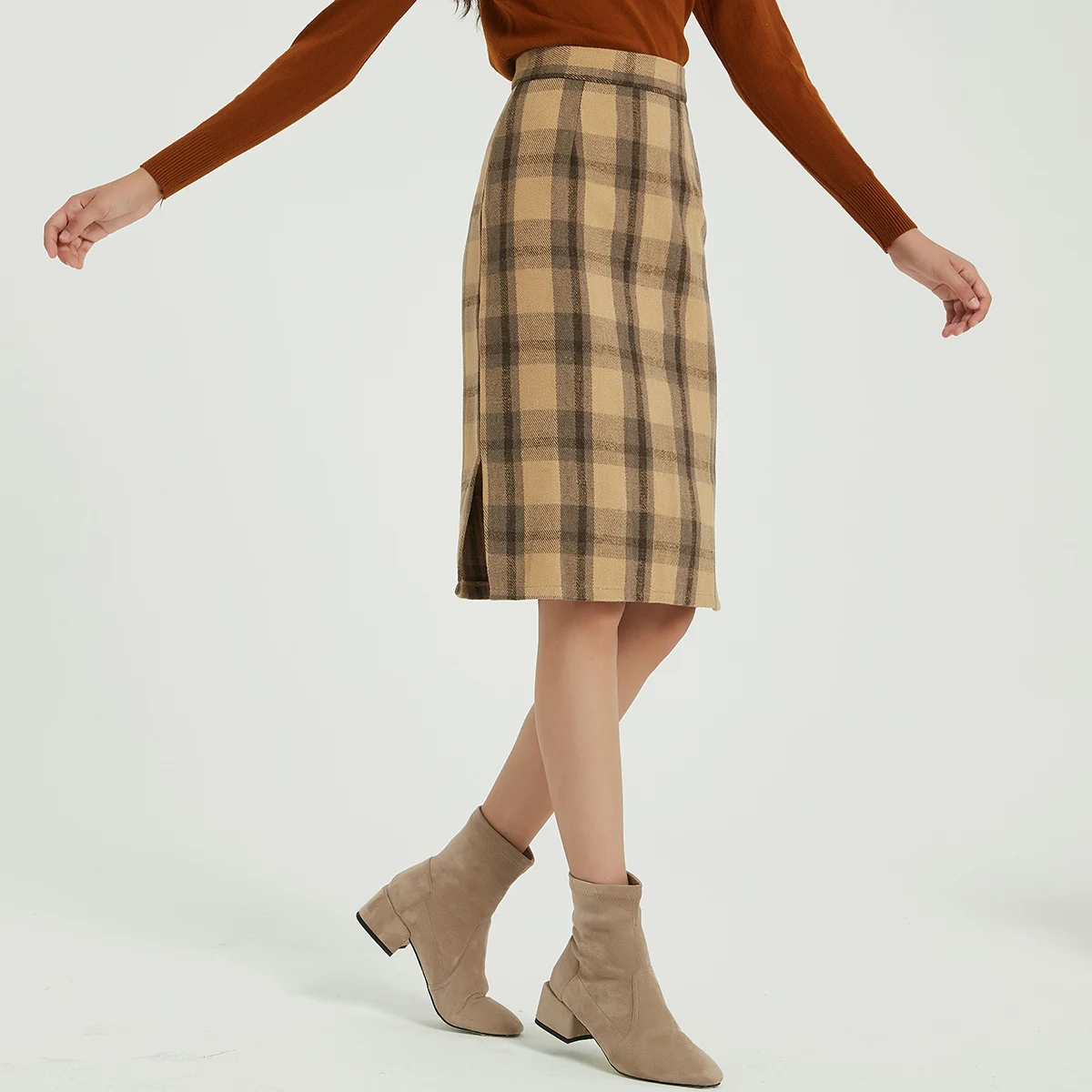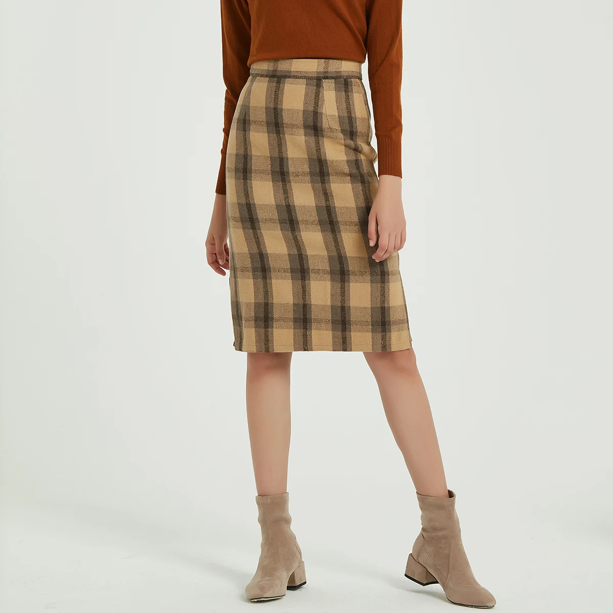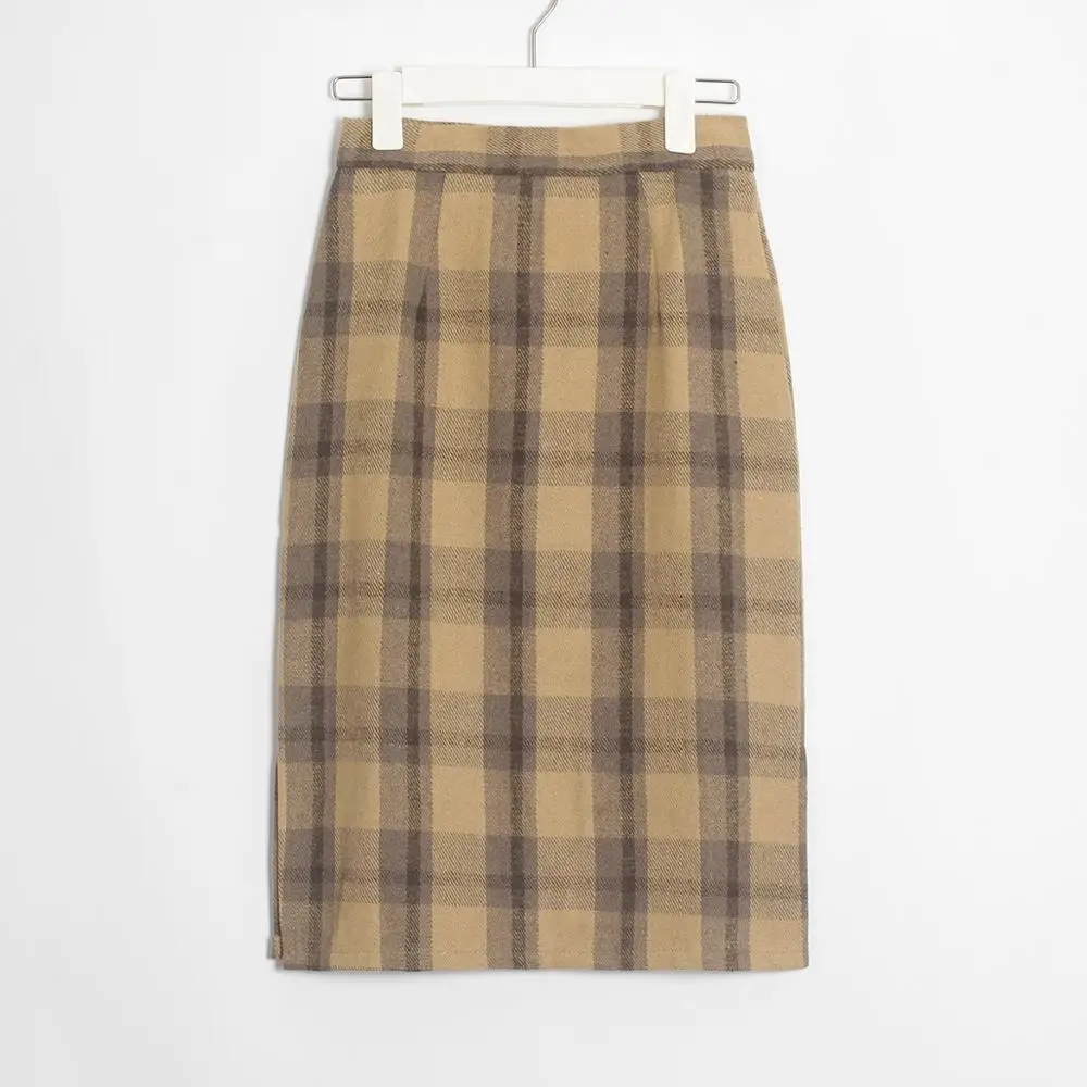Женская винтажная клетчатая юбка до колена Wixra, элегантная шерстяная юбка с высокой талией, Осень-зима 2019