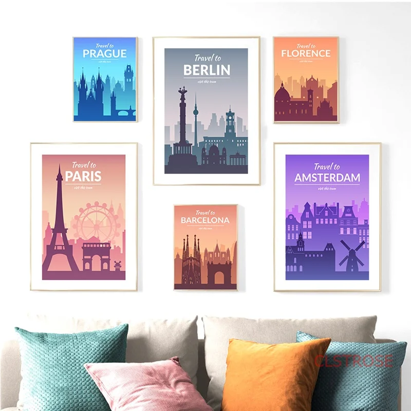 Скандинавские Мультяшные дорожные плакаты и принты, пейзаж Парижа, ...