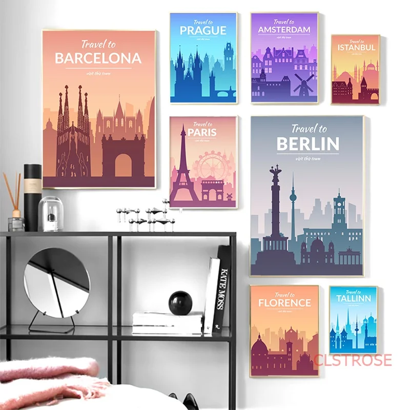 Абстрактные всемирно известные города, скандинавские плакаты и принты, Настенная картина на холсте, Мультяшные настенные картины для ребенка, декор детской комнаты